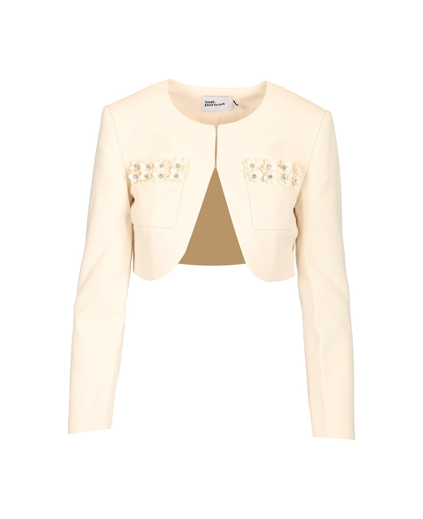 Cropped jacket by Self-Portrait in crepe featuring 3D floral motifs and frontal pockets