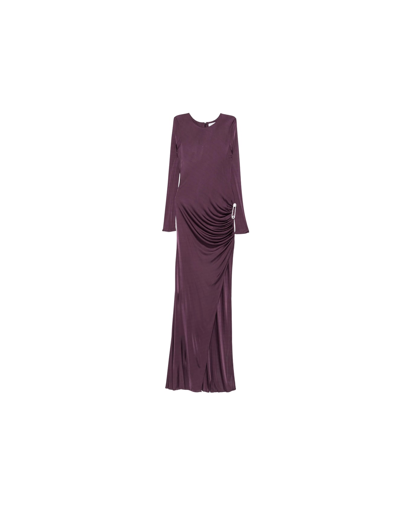 dark purple draped design long sleeves jewel-embellished detail asymmetrical hem