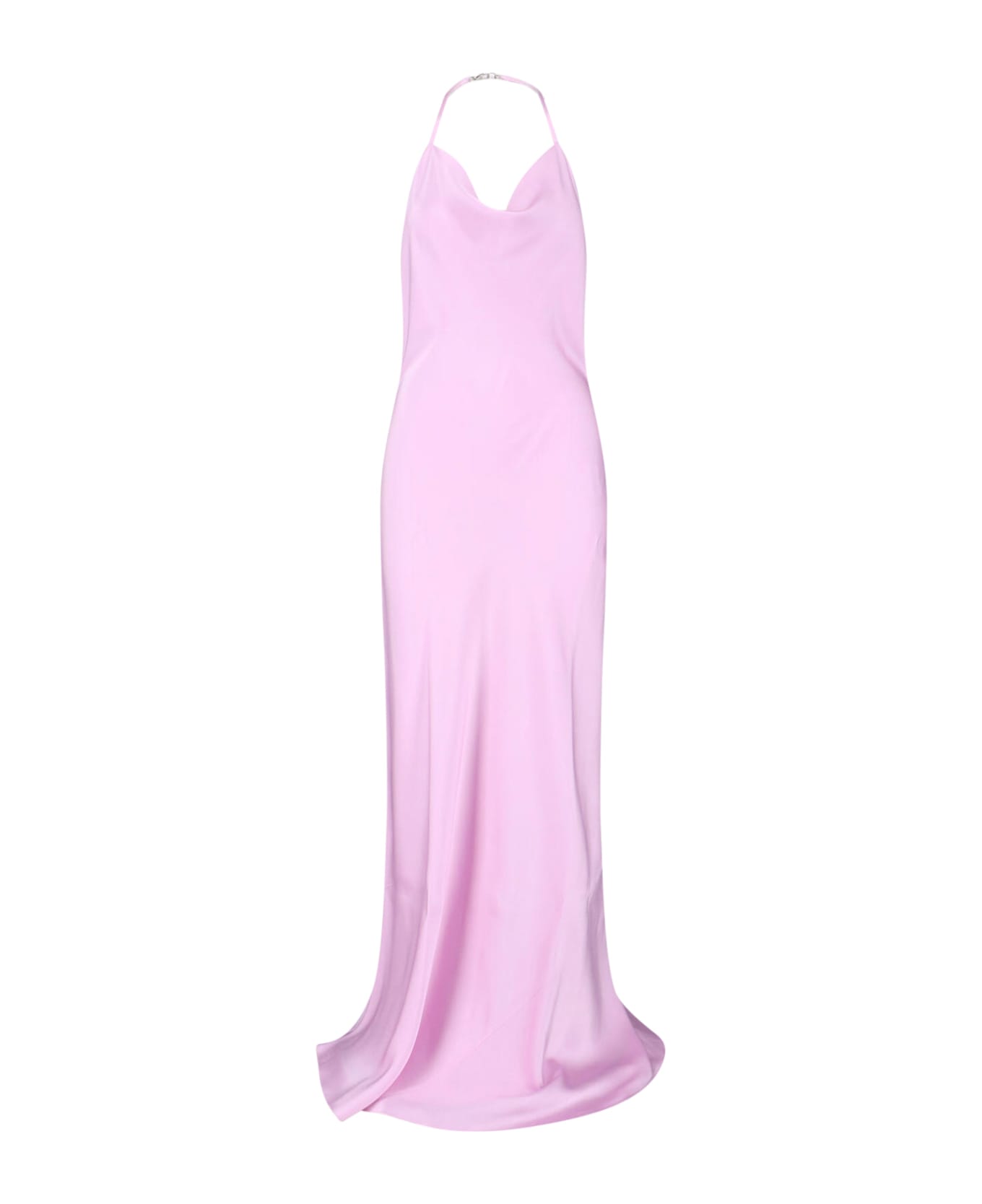 Stella McCartney 'Envers' maxi dress in purple viscose blend satin Light Orchid, side zip closure, carabiner lace, draped design, bare back. Composition: 73% Acetate, 27% Viscose