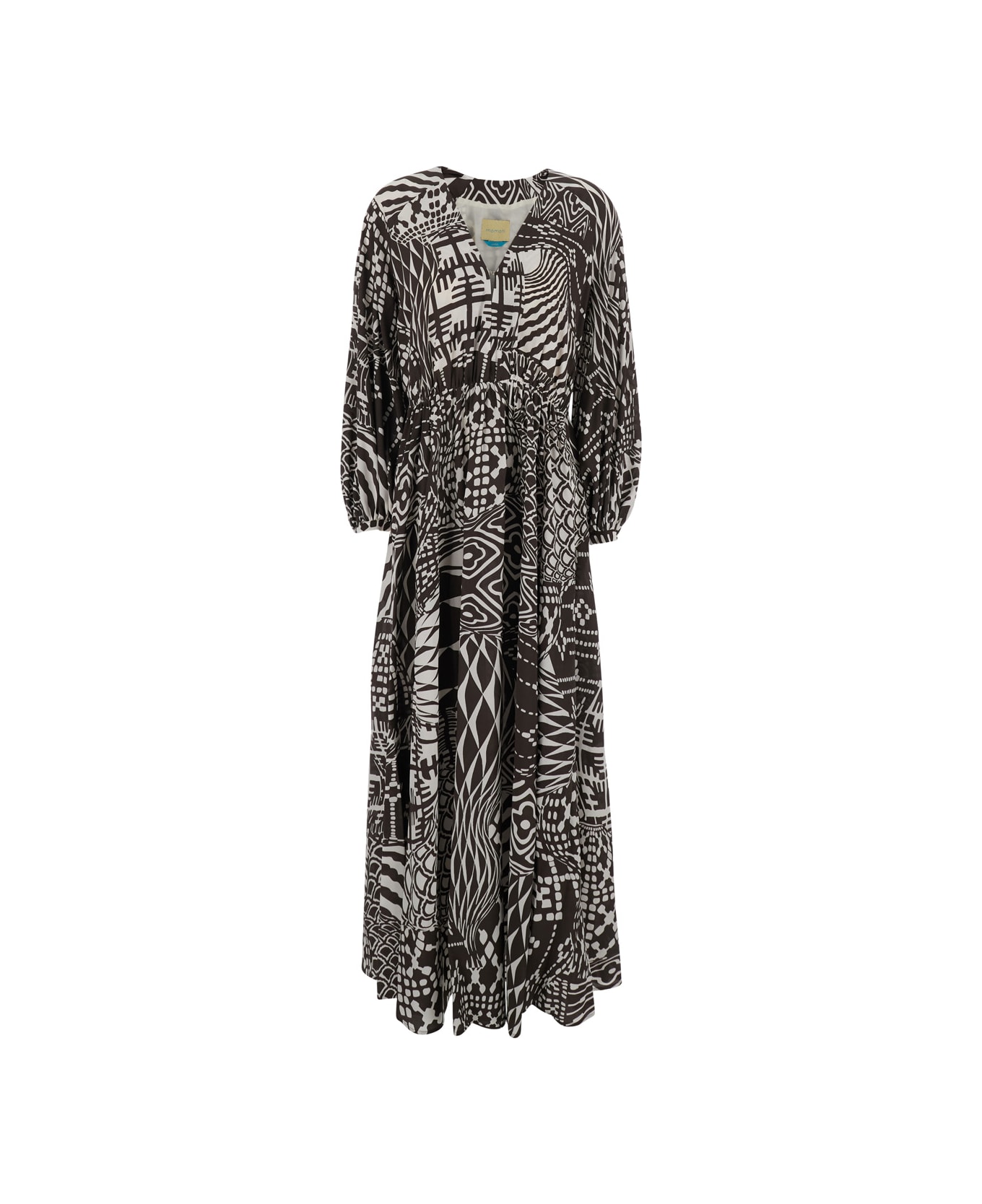 'francisco' Brown Silk Dress With V Neck And All-over Geometric Motif Woman