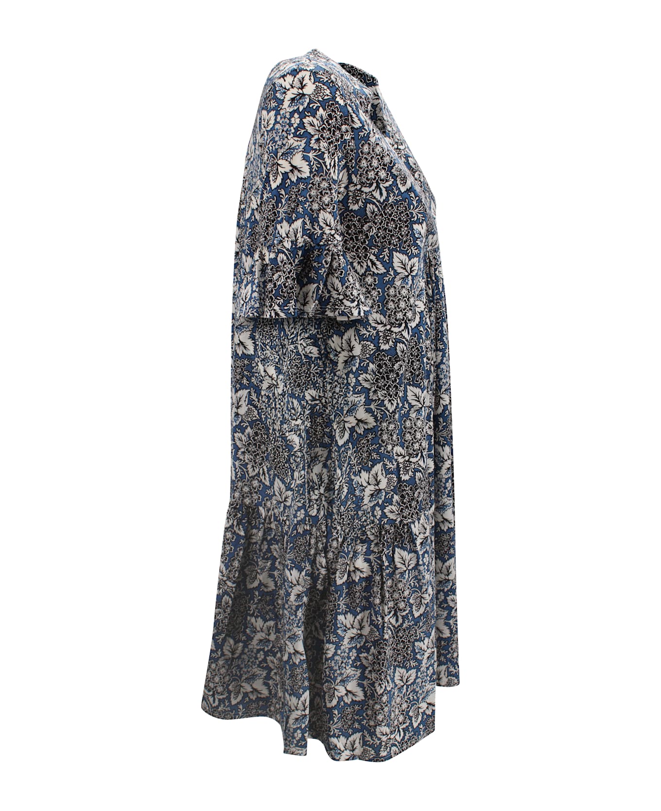 The Fuoco dress by Weekend Max Mara is crafted from stretch cotton with a patterned design, offering a breathable and comfortable feel. It features an A-line silhouette, a decorative V-neckline, and straight short sleeves with ruffle details. Finished with decorative pleats and side slit pockets for a feminine and effortless look.