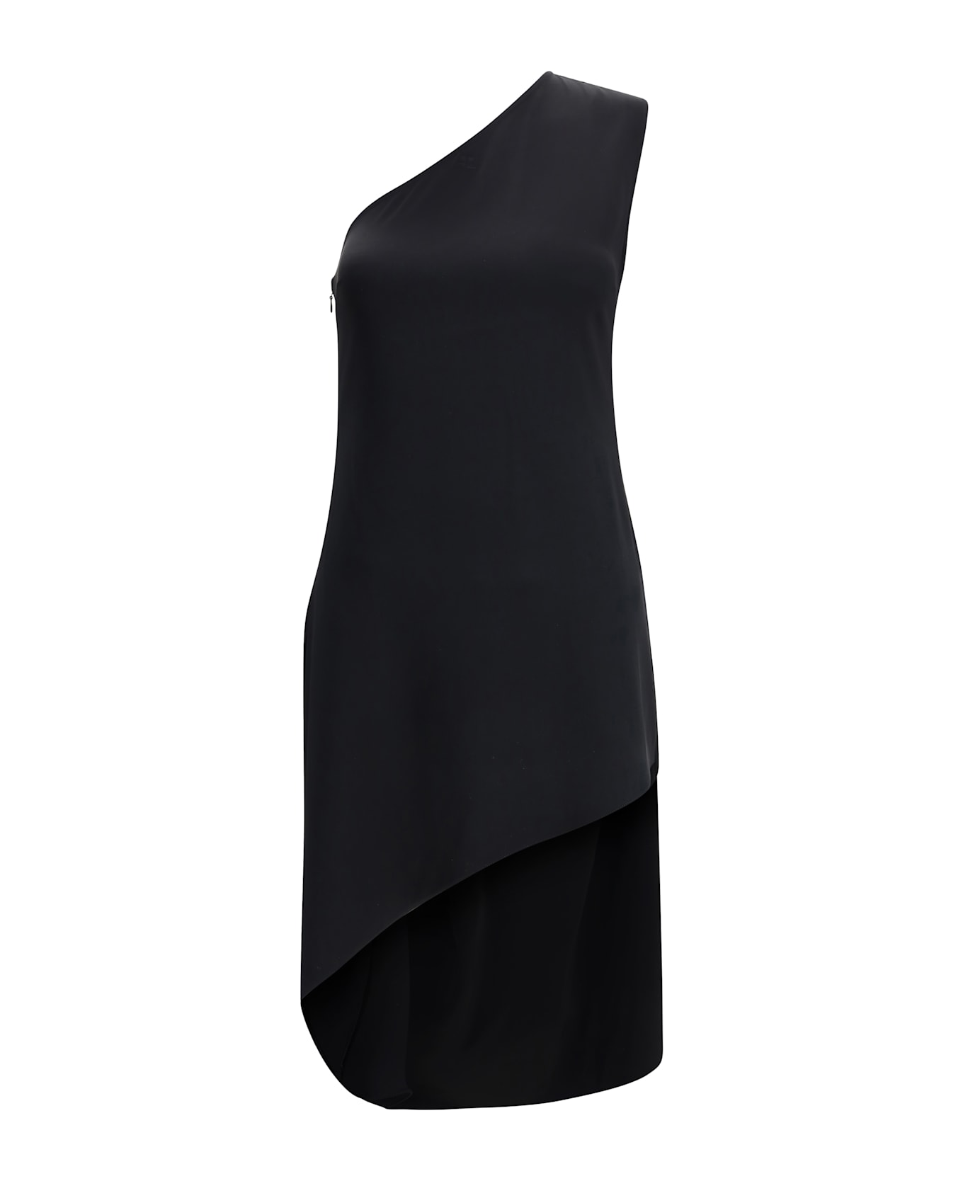 The infinity asymmetrical dress from courrèges is a bold and sophisticated piece that combines modern design and iconic details. the one-shoulder style lends a touch of femininity and originality, while the side zipper closure adds practicality and a minimalist look. the iconic embroidered logo on the front enriches the design with a distinctive element, enhancing the brand's heritage. the asymmetrical cut of the dress creates a dynamic and contemporary silhouette, perfect for those looking for an elegant yet off-the-beaten-path look.