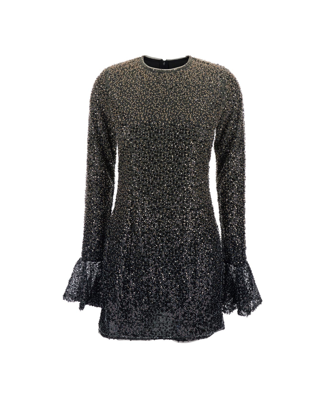 Metallic Dress With All-over Beading And Flared Hems In Fabric Woman