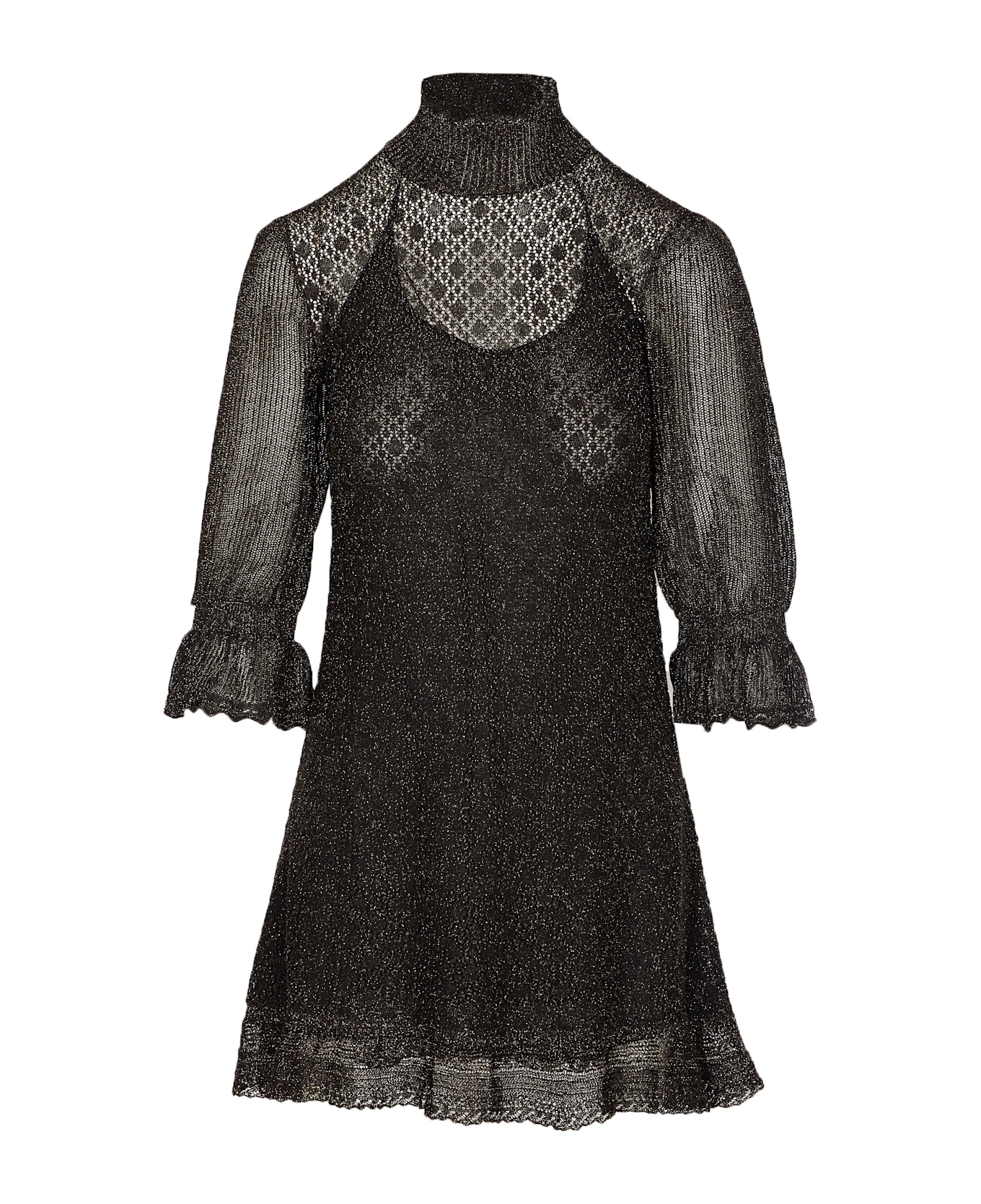 Chloè black gold dress, petticoat, high neck, button on the back, long sleeves, lurex Composition: 83% Viscose, 17% Metallised Polyester