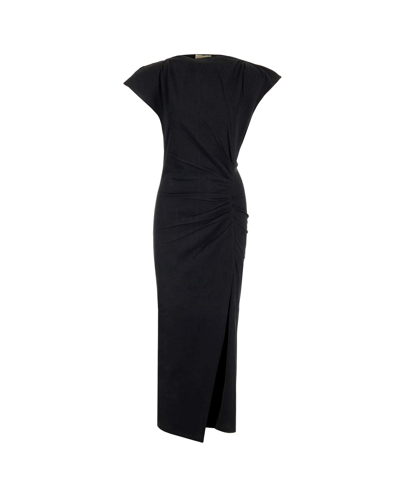 'Nadela' dress in black cotton jersey from Isabel Marant, with draping on the left side, short cap sleeves, front slit. Composition: MAIN MATERIAL:100% COTTON (1)