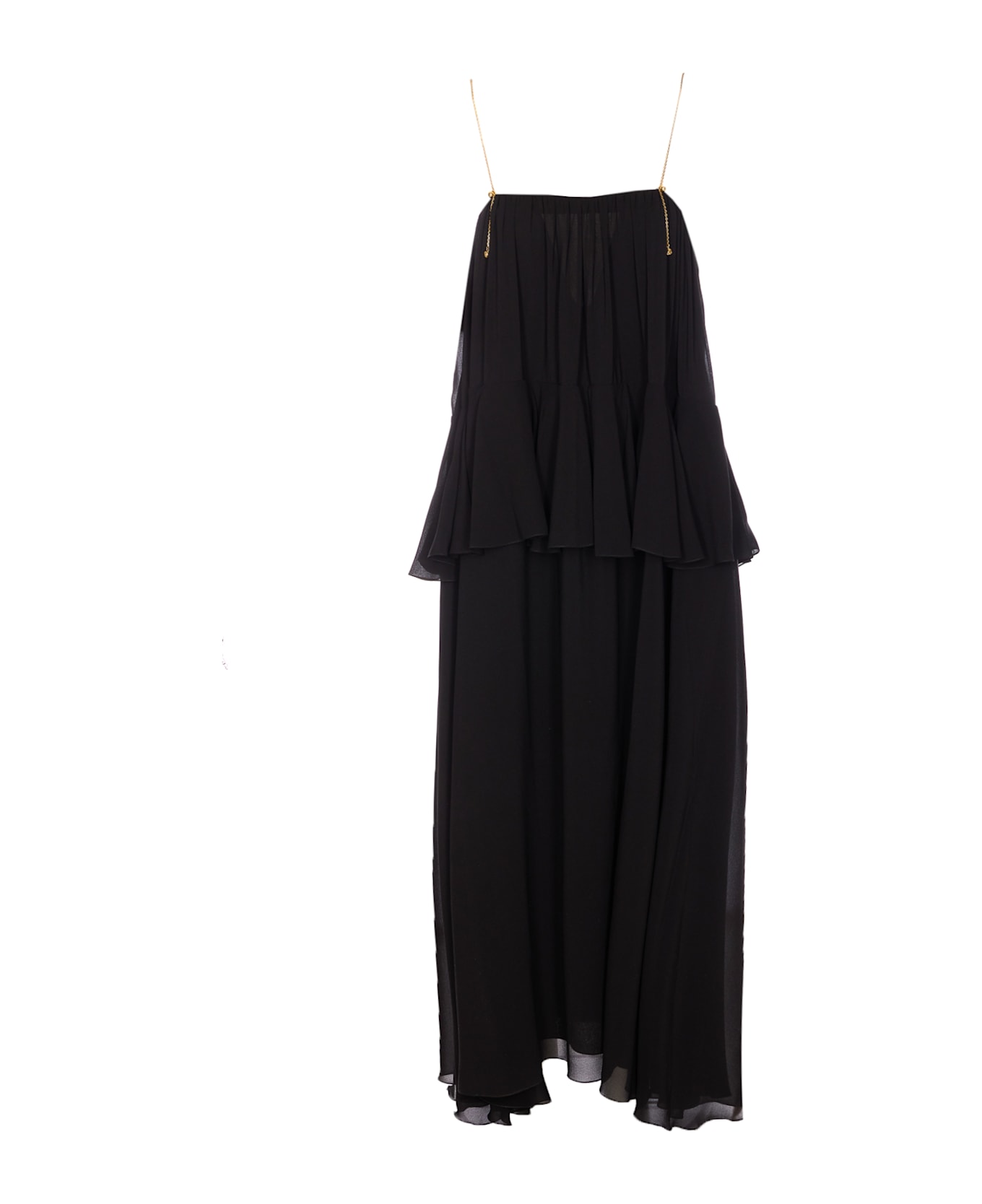Chloè black rouches dress, chain detail, over fit, long model Composition: 100% Silk, 90% Fibre Acetate, 10% Silk