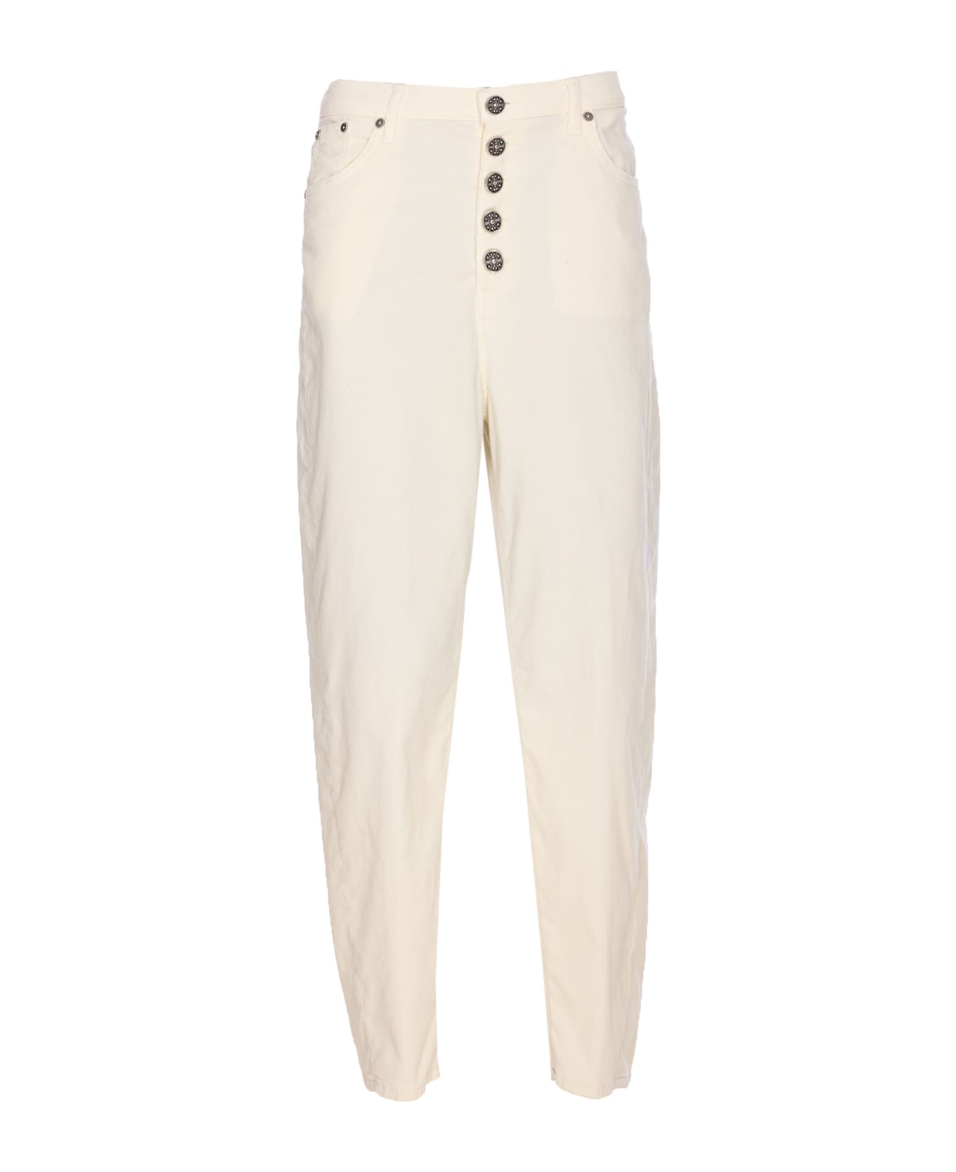 Dondup white Bessie Gioie jeans, jewels buttons closure on the front, pockets, patch logo on the back, loose fit, velvet effect Composition: 66% Cotton, 32% Lyocell, 2% Elastane