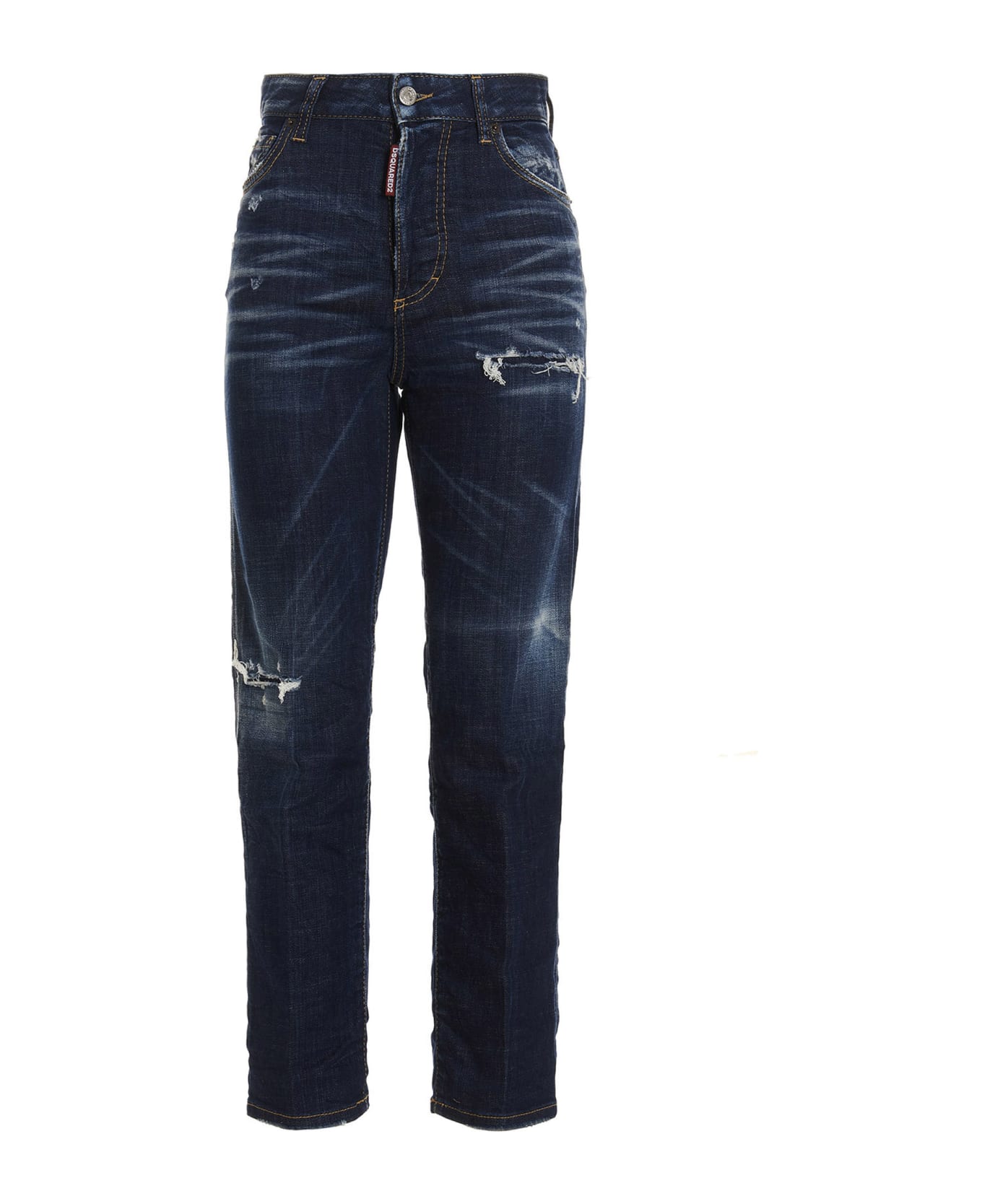 'Boston cotton denim jeans with back embroidery, a button closure, five pockets, all over used-effect details, and a cropped leg style.
