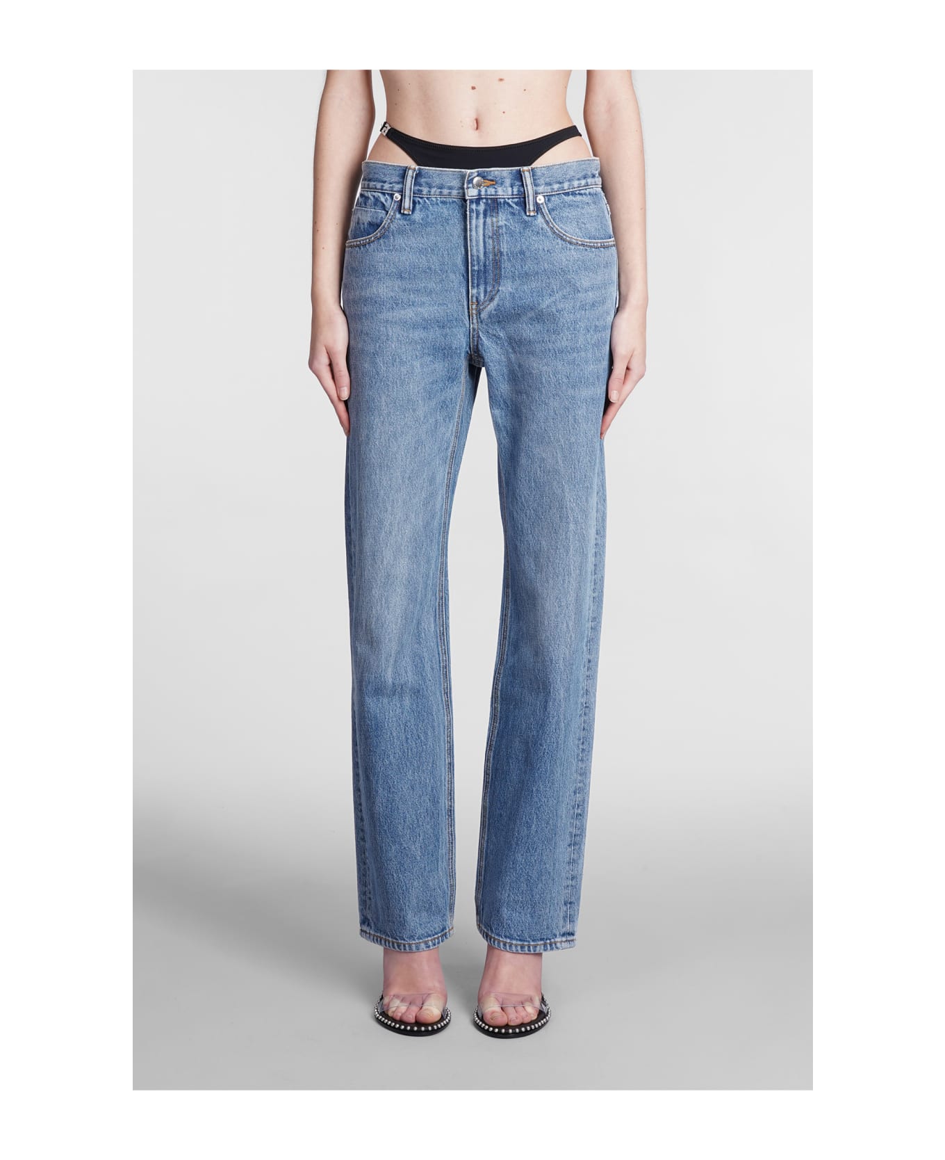 Jeans in blue denim, cut out detail, Slip Inside, waist belt loops, button and zip closure, five pockets, 100% cotton, Model is 180 cm and wears size 26