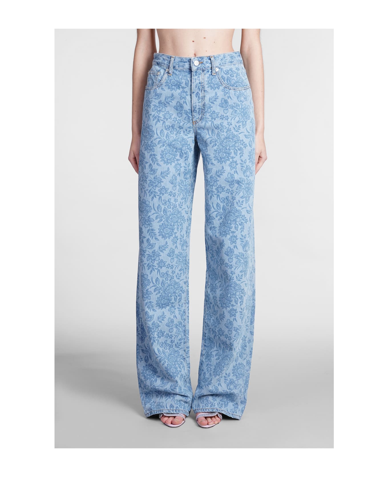 Jeans in cyan denim, button and zip closure, waist belt loops, five pockets, 100% cotton, Made in Italy, oversized fit, model is 180 cm and wears size 27