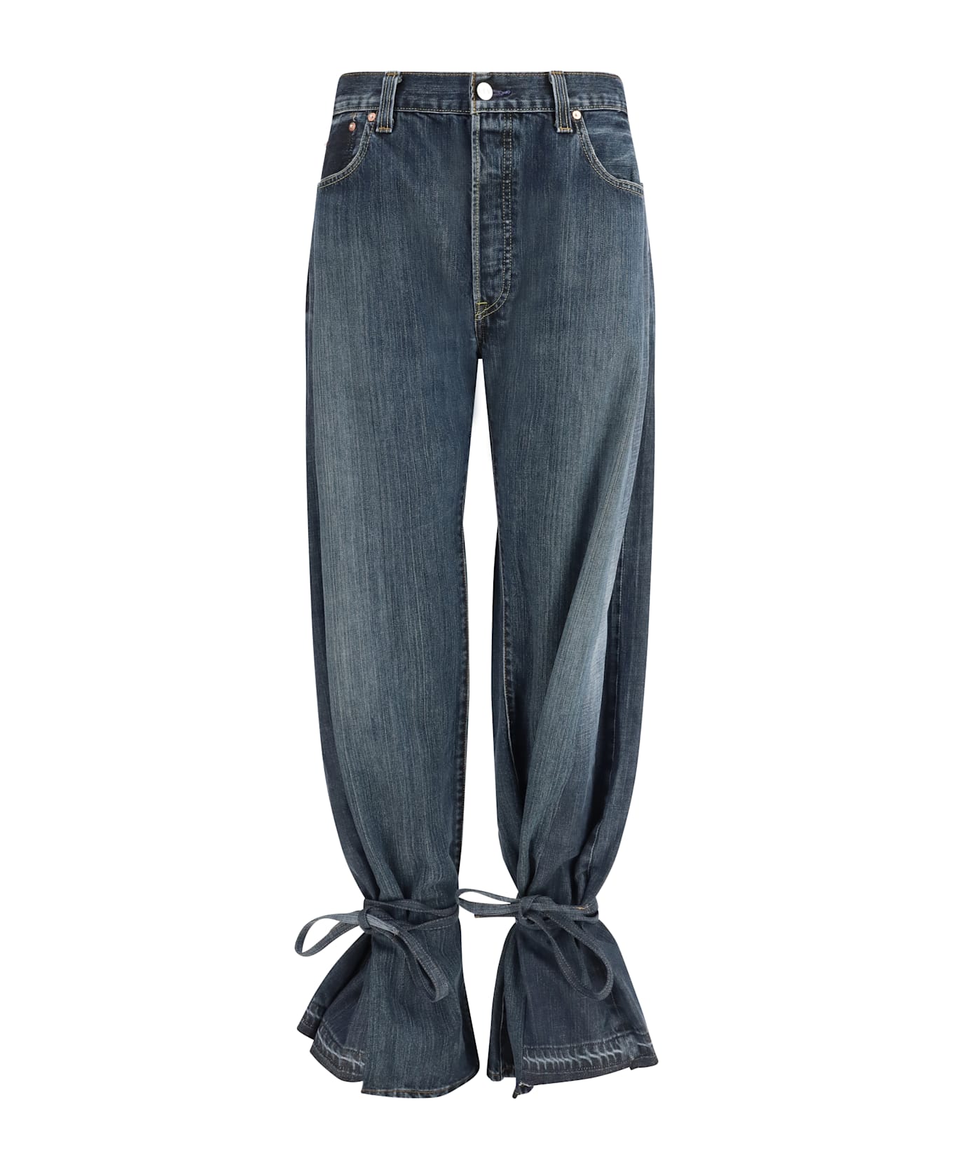 The ridley jeans by e. l. v. denim are an elegant and modern garment, featuring a high waist that accentuates the figure and a straight leg for a comfortable and refined fit. the five-pocket style with zipper and button closure offers practicality, while the tie-back ankle straps add a distinctive and trendy touch, allowing you to customize the fit. perfect for a casual-chic look, these jeans are ideal for those seeking a mix of style and comfort.