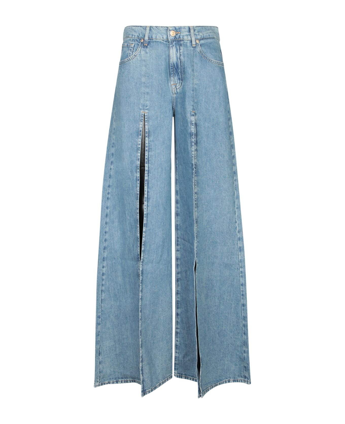 These iconic jeans from 7 For All Mankind feature a bold slit adding a modern edge to classic sky blue denim. Perfect for a casual yet refined look.