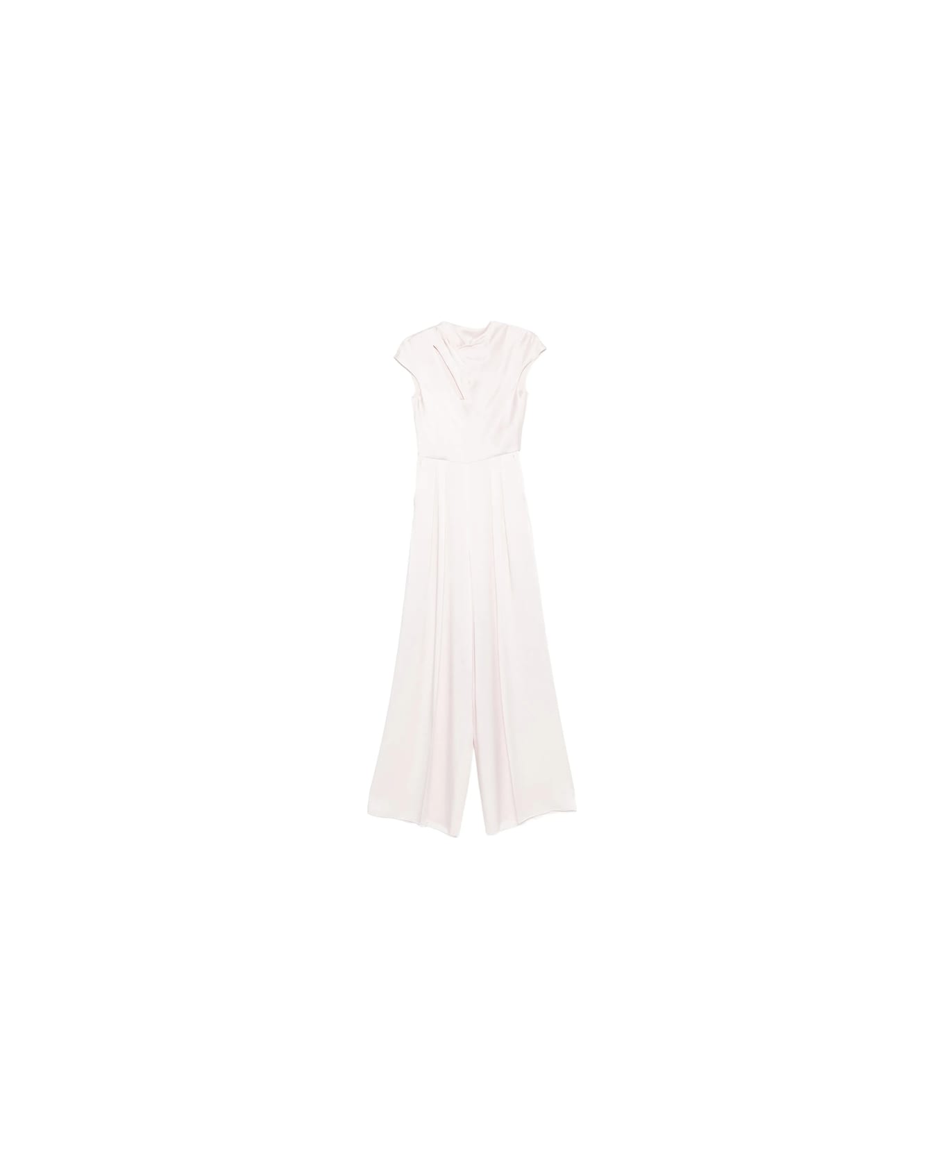 light pink draped detail wide leg sleeveless V-neck concealed rear zip closure