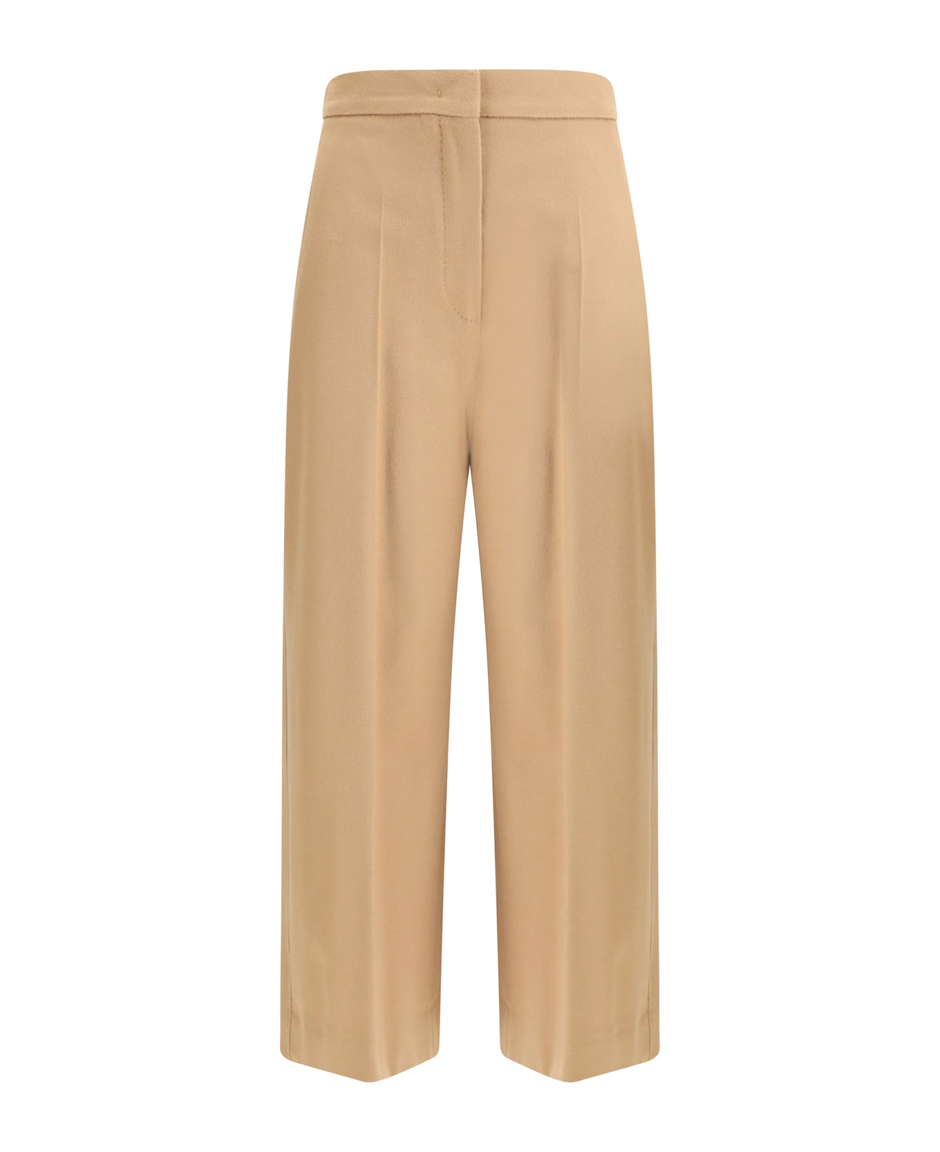The marengo trousers by max mara studio express contemporary elegance through clean lines and a fluid silhouette. crafted from lightweight pure wool drap, they feature a wide leg and a relaxed fit that moves gracefully with the body. the high waistband with concealed zip and hook closure highlights the refined tailoring, while the slanted side pockets add a touch of understated practicality. a pressed crease and stitched back pleats define the shape, enhancing the trousers balance and structure. versatile and polished, they are ideal for creating modern, sophisticated looks that transition effortlessly from day to evening.