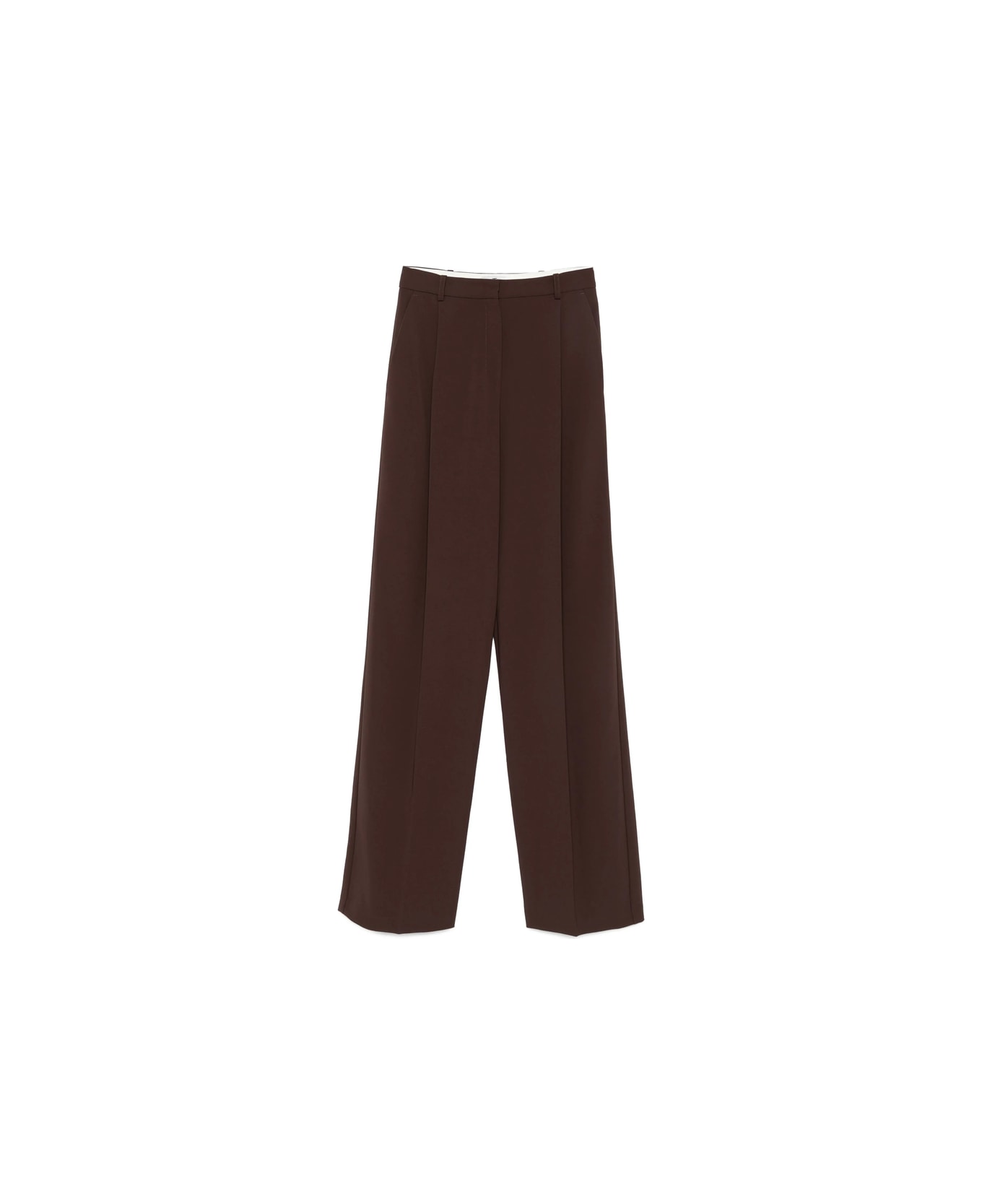 coffee brown pleated front side pockets straight leg mid-rise waist concealed zip fly