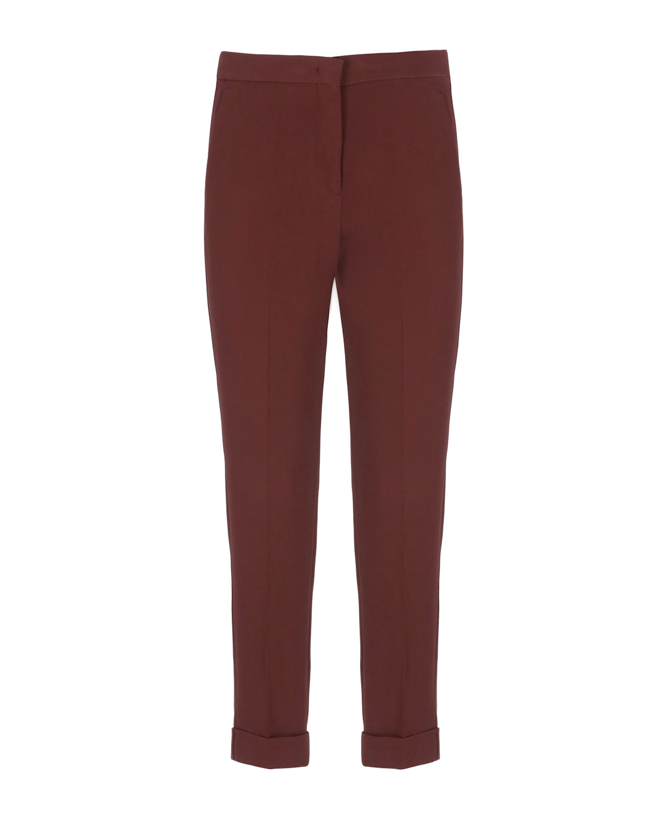 - Bordeaux Etro viscose pants for woman - Front zip, hooks and button fastening - Two side slit pockets - Two rear welt pockets - Turn-up at hem Composition: 66% Viscose, 31% Acetate, 3% Elastane