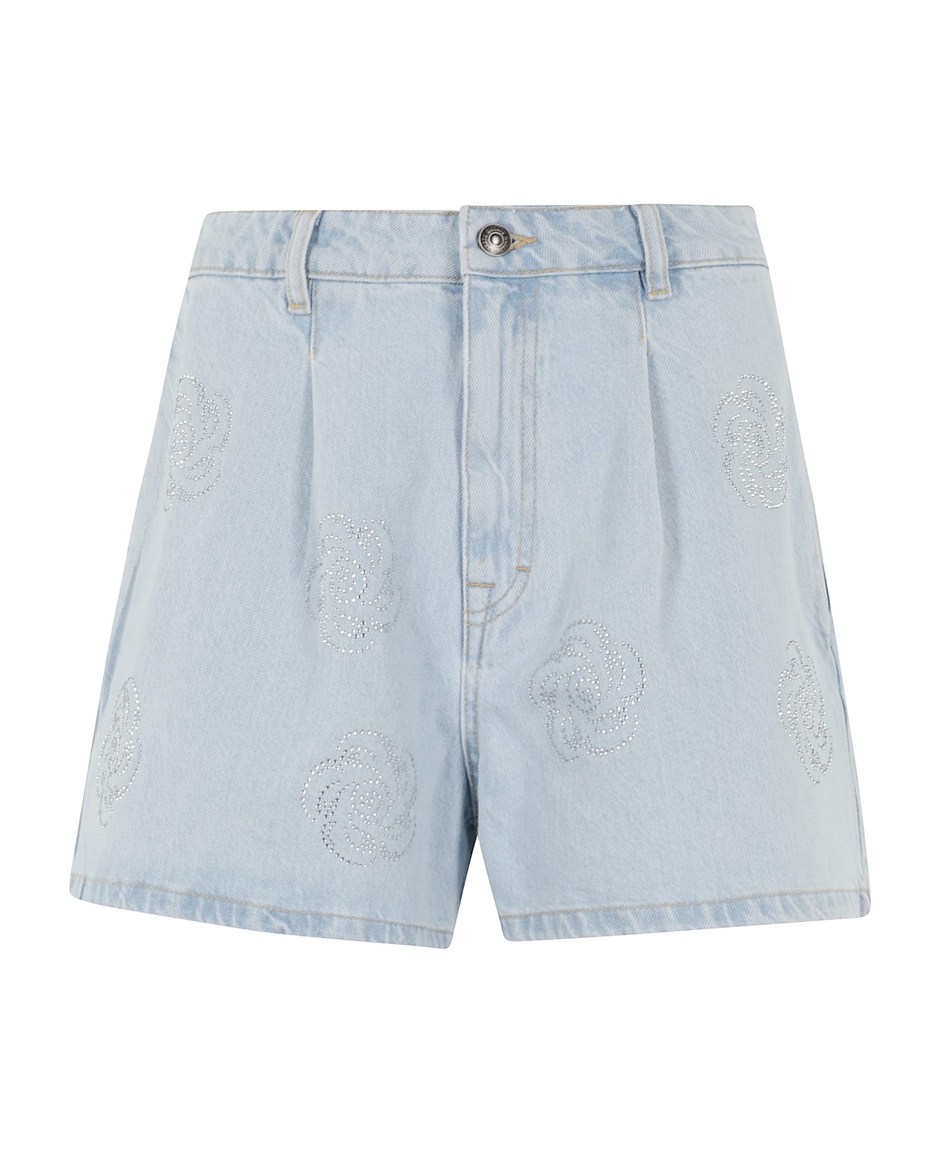 Stud shorts - Rotate - Light blue color - Cotton denim fabric with rhinestone roses - High waist with belt loops - Wide leg with darts - Flush side pockets - Regular fit