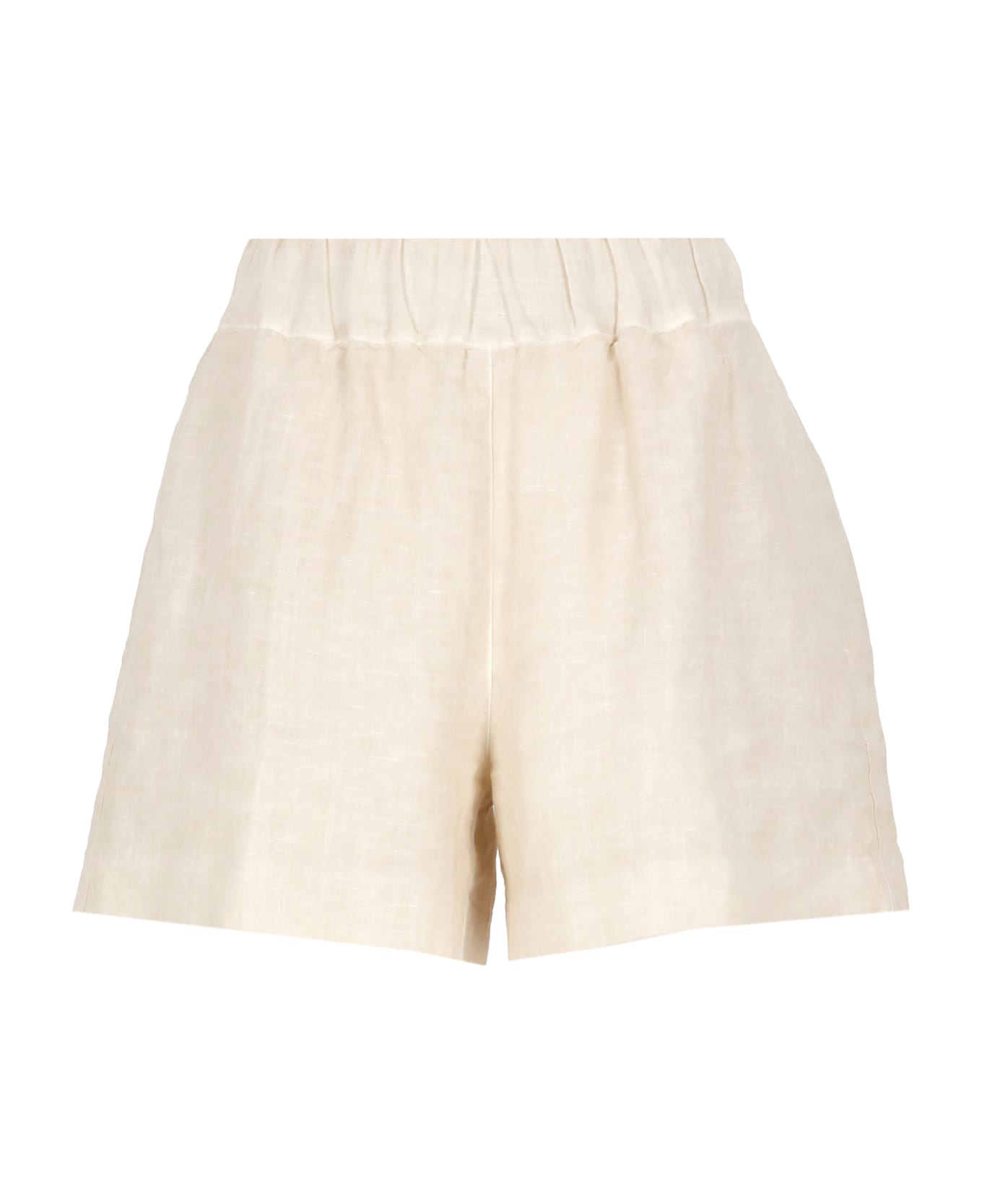 - Beige 120% Lino linen shorts for woman - Elastic waist - Two side slit pockets - One rear button pocket