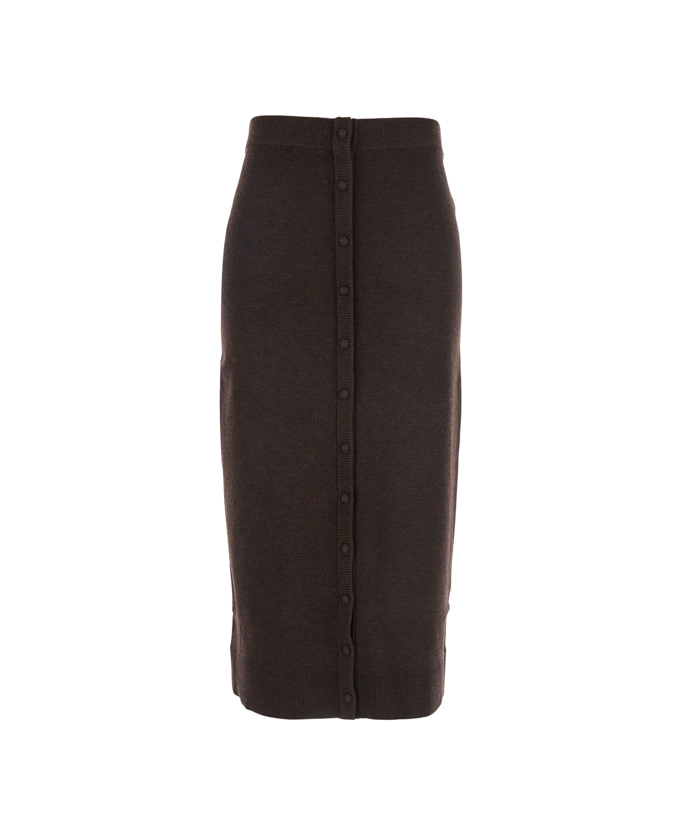 Brown Skirt With Button Fastening In Wool Woman