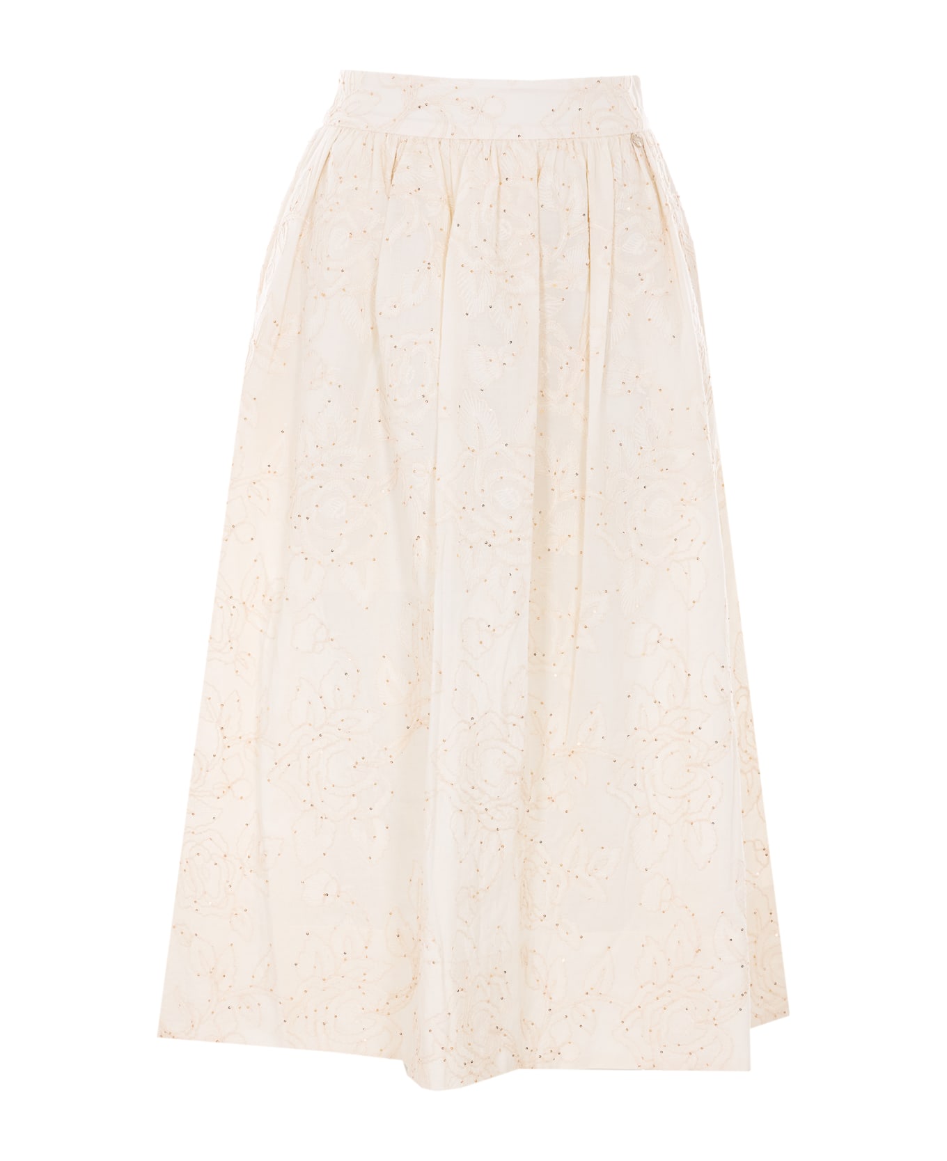 Liu Jo beige skirt,zip and hook closure on side, all over sequins details, embroidered flower detail