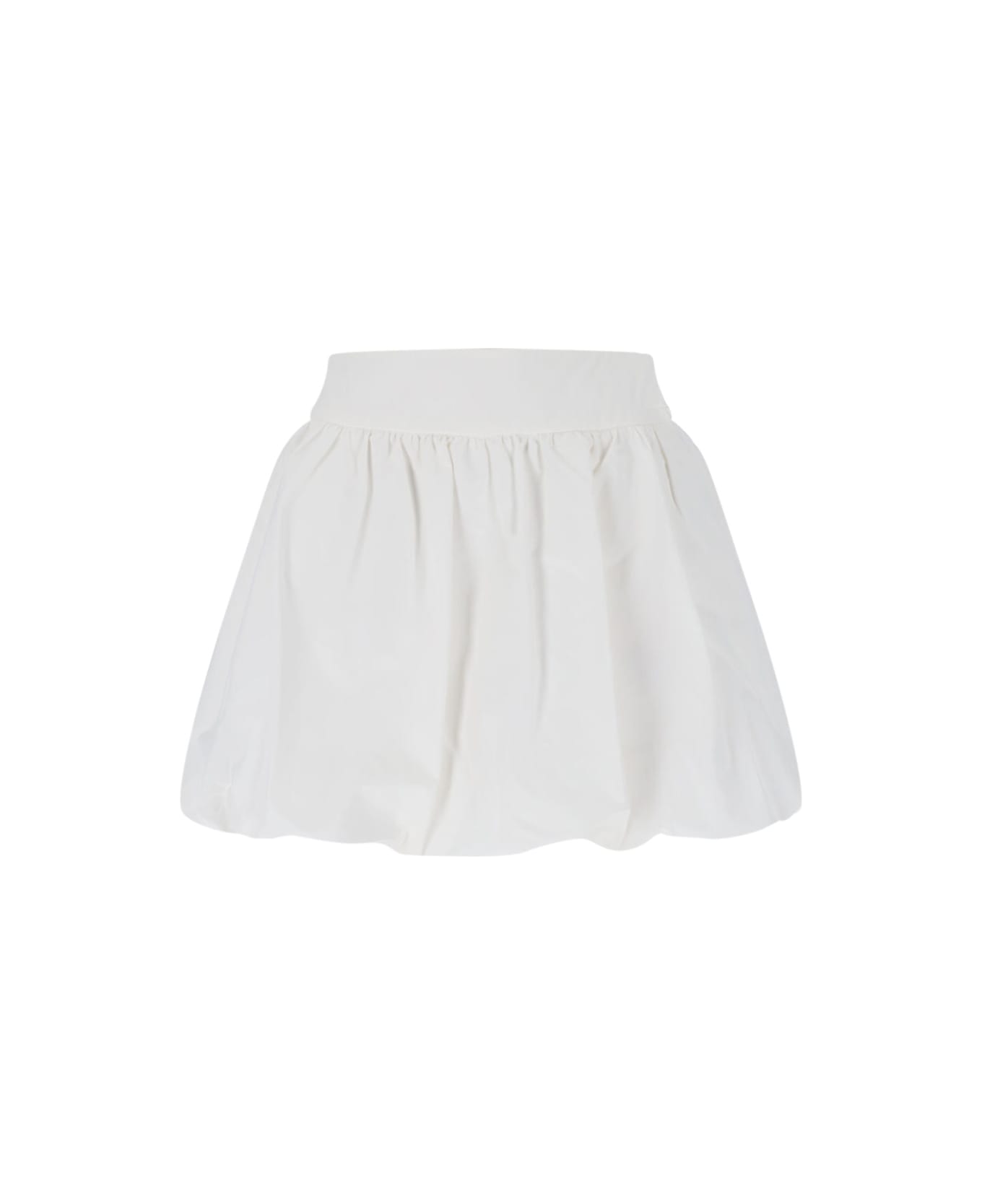 Balloon Dunst mini skirt in white cotton blend with draped details, high waist elastic, side hook closure, two side pockets, straight hem.