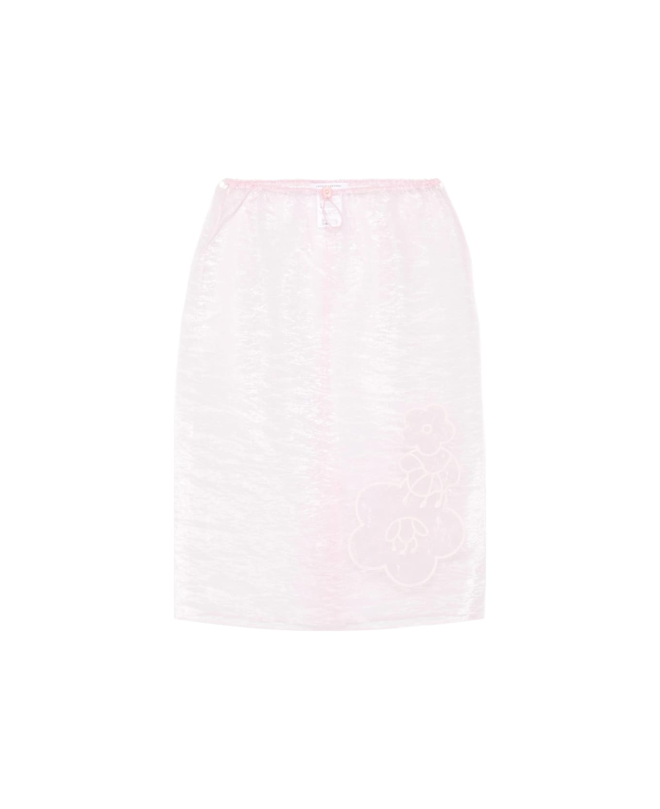 pink semi-sheer construction embroidered floral detail elasticated waistband A-line skirt