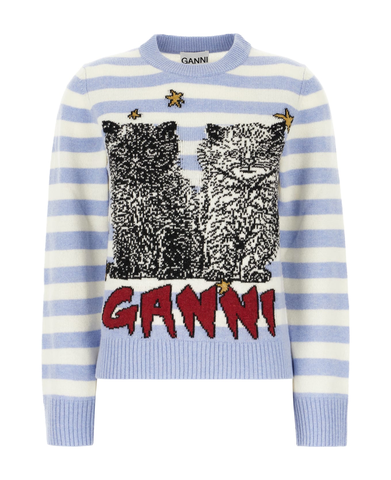 Sweater realized in wool blend characterized by striped motif embroidery on the entire surface and peculiar logoed embroidery at the front. -Ribbed crew-neck, cuffs and hemline Composition: Exterior: 44% Wool 34% Recycled wool 19% Recycled nylon 2% Polyester 1% Nylon