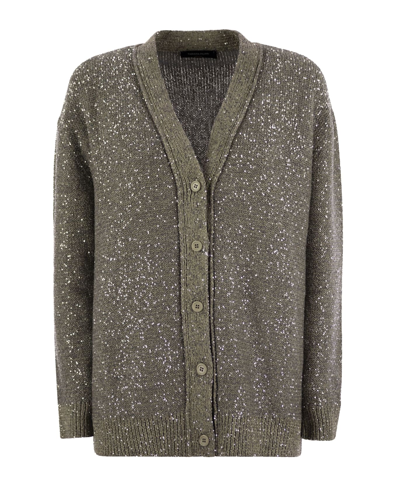 Sequin Cotton Ribbon V Neck Cardigan