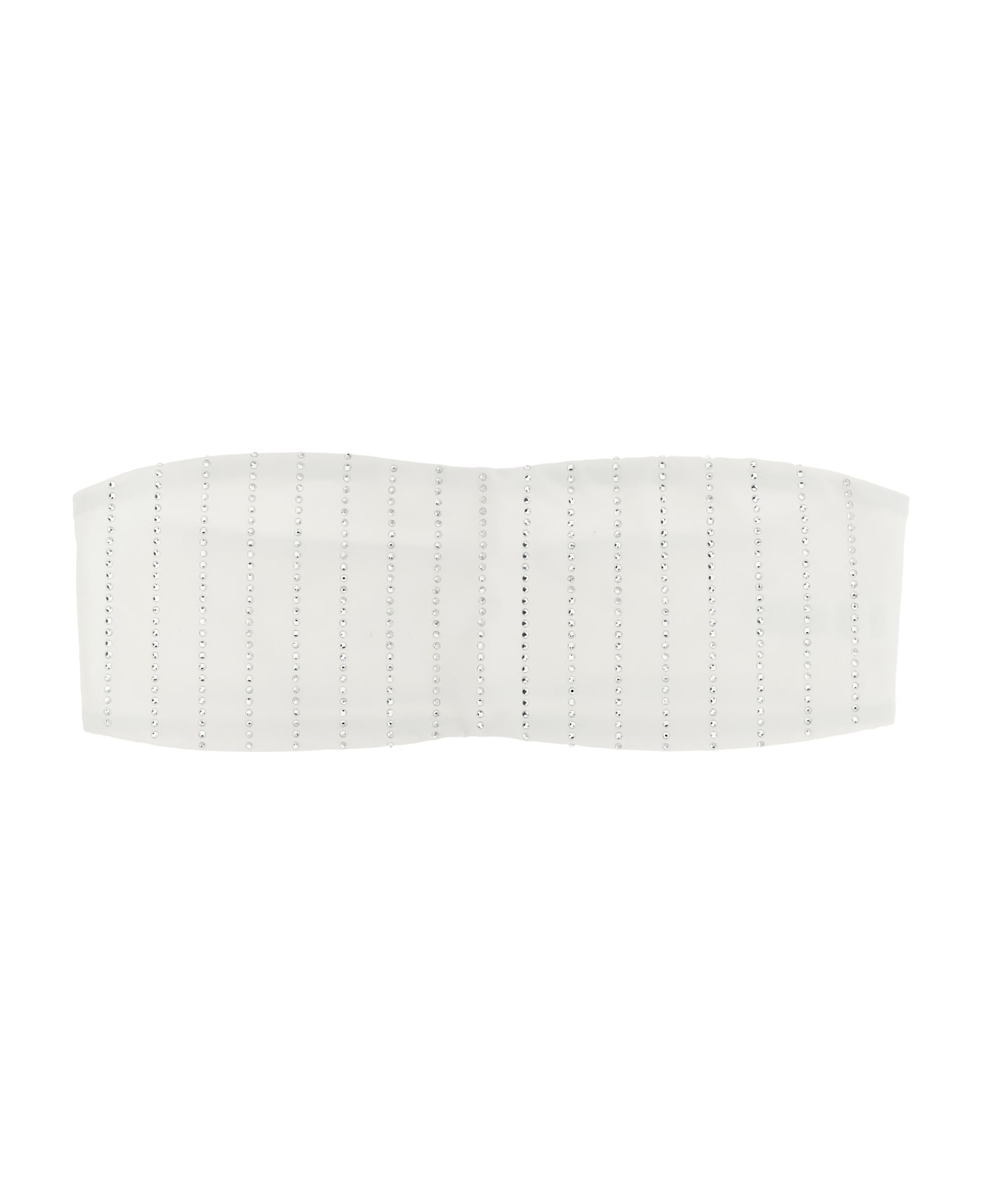 'Rebby' stretch fabric bikini top with front rhinestone appliqué, band style with side slats. Composition: 90% polyamide, 10% elastane