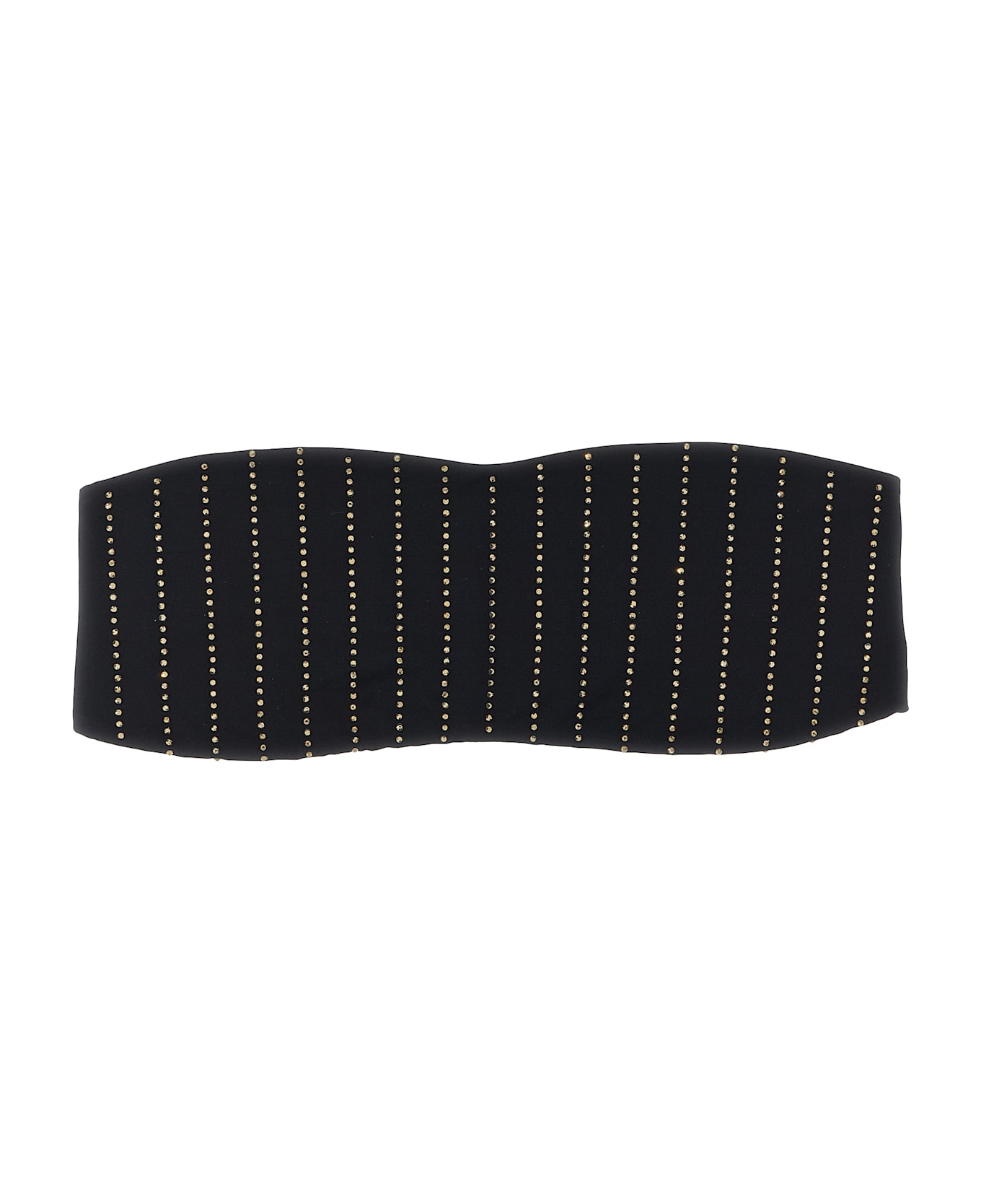 'Rebby' stretch fabric bikini top with front rhinestone appliqué, band style with side slats. Composition: 90% polyamide, 10% elastane
