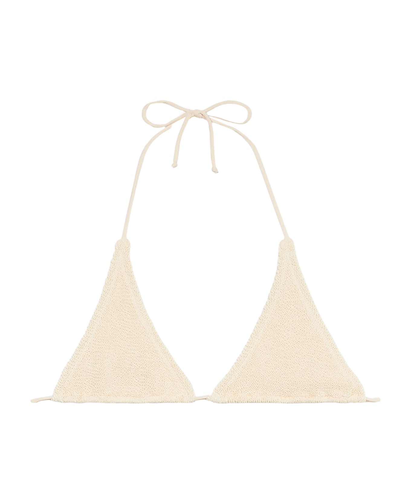 Woman crinkle elongated triangle bikini White plain color Swim briefs with adjustable laces Stretch fabric Regular fit Care instructions: Cold hand wash. Do not soak. Do not iron. Do not dry off in contact with other garments. Rinse after contact with chlorine or salt water.