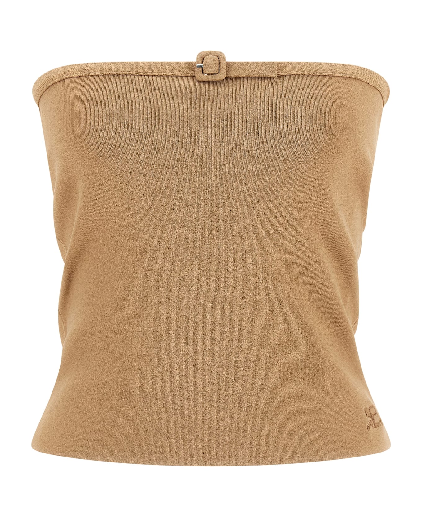 'Buckle' top in stretch viscose knit with off-the-shoulder bandeau pattern, trompe l'oeil strap detail and tone-on-tone logo embroidery on the front.