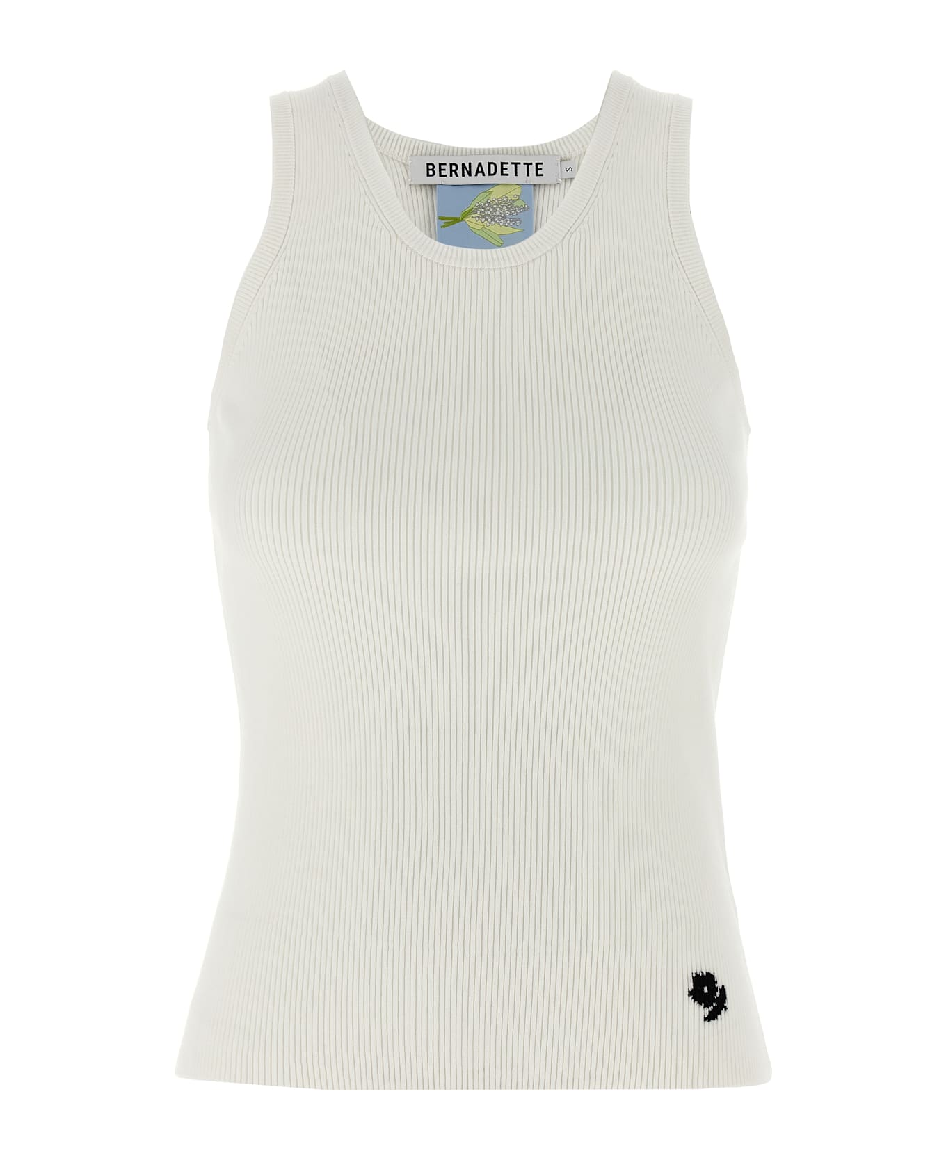 Ribbed knit top with stretch and round neckline, side intarsia detail, sleeveless.