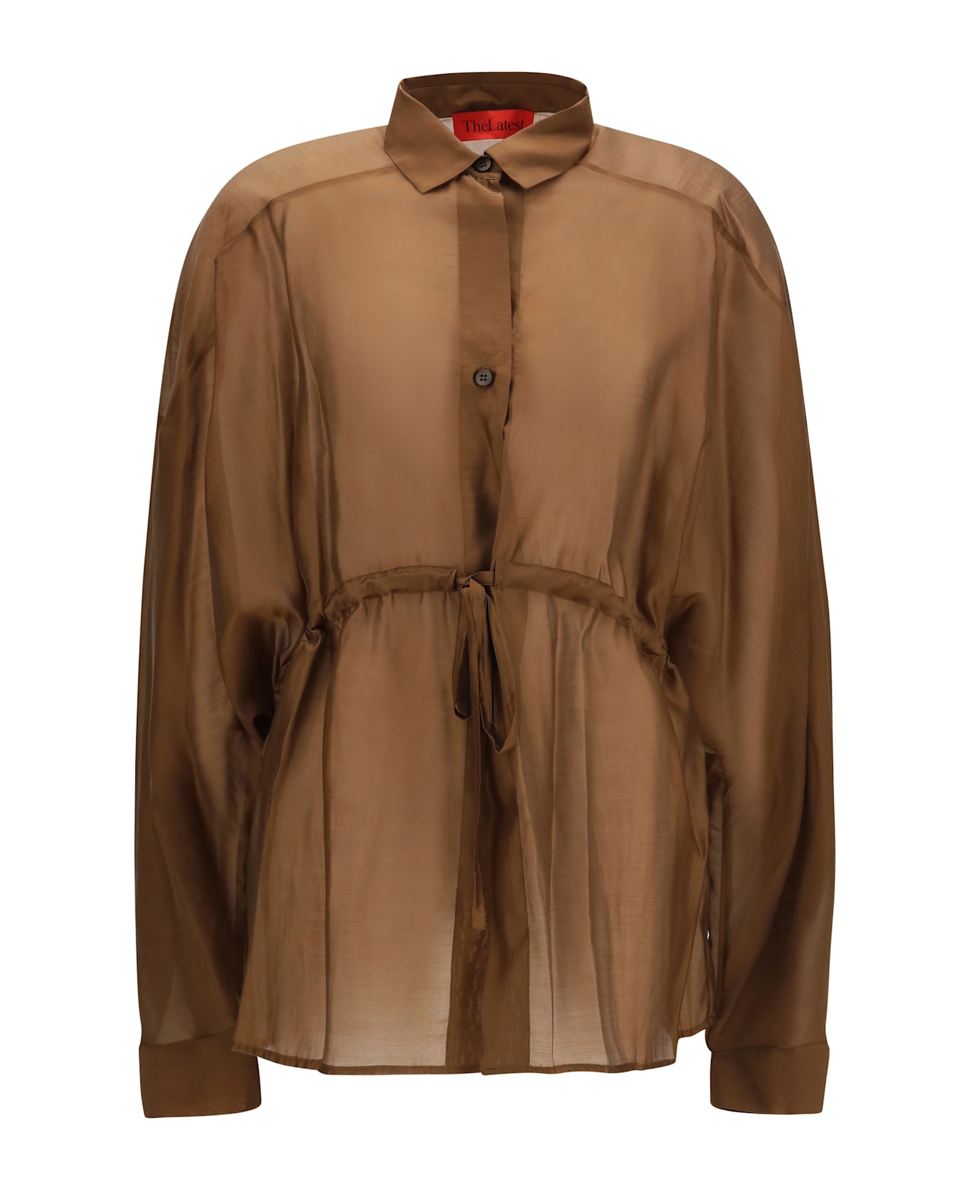 The dalida shirt by the latest is made from a soft, breathable fabric, ideal for the spring summer season. the wide, fluid silhouette with kimono sleeves offers comfort and relaxed elegance, while the adjustable drawstring allows you to define the waist and customize the fit. the pointed collar, mother-of-pearl button closure, and buttoned cuffs complete the design with refined details.