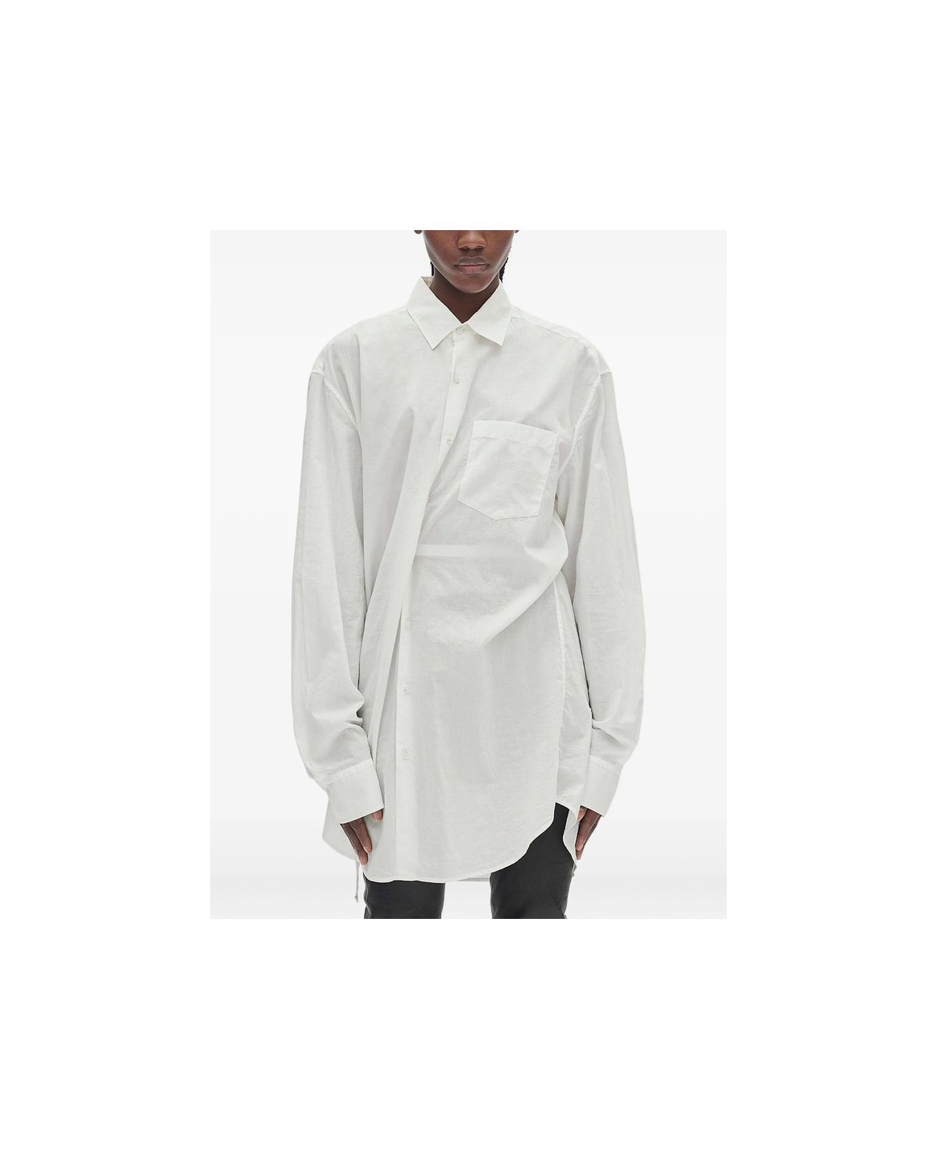 natural white cotton long sleeves button fastening asymmetrical fastening interior self-tie string single chest pocket