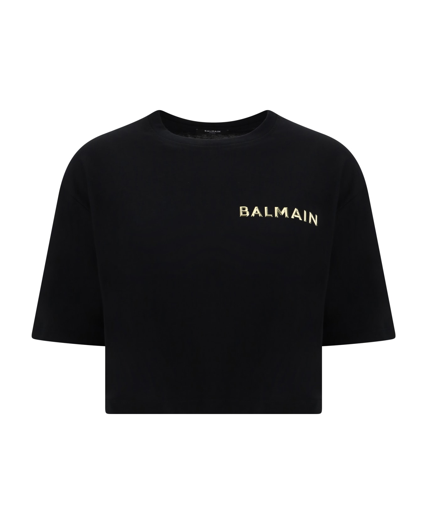 Cotton t-shirt by balmain, ribbed crew neck, iconic brand monogram applied in contrasting color on front, cropped pattern, oversized fit. Composition: 100% % Cotton