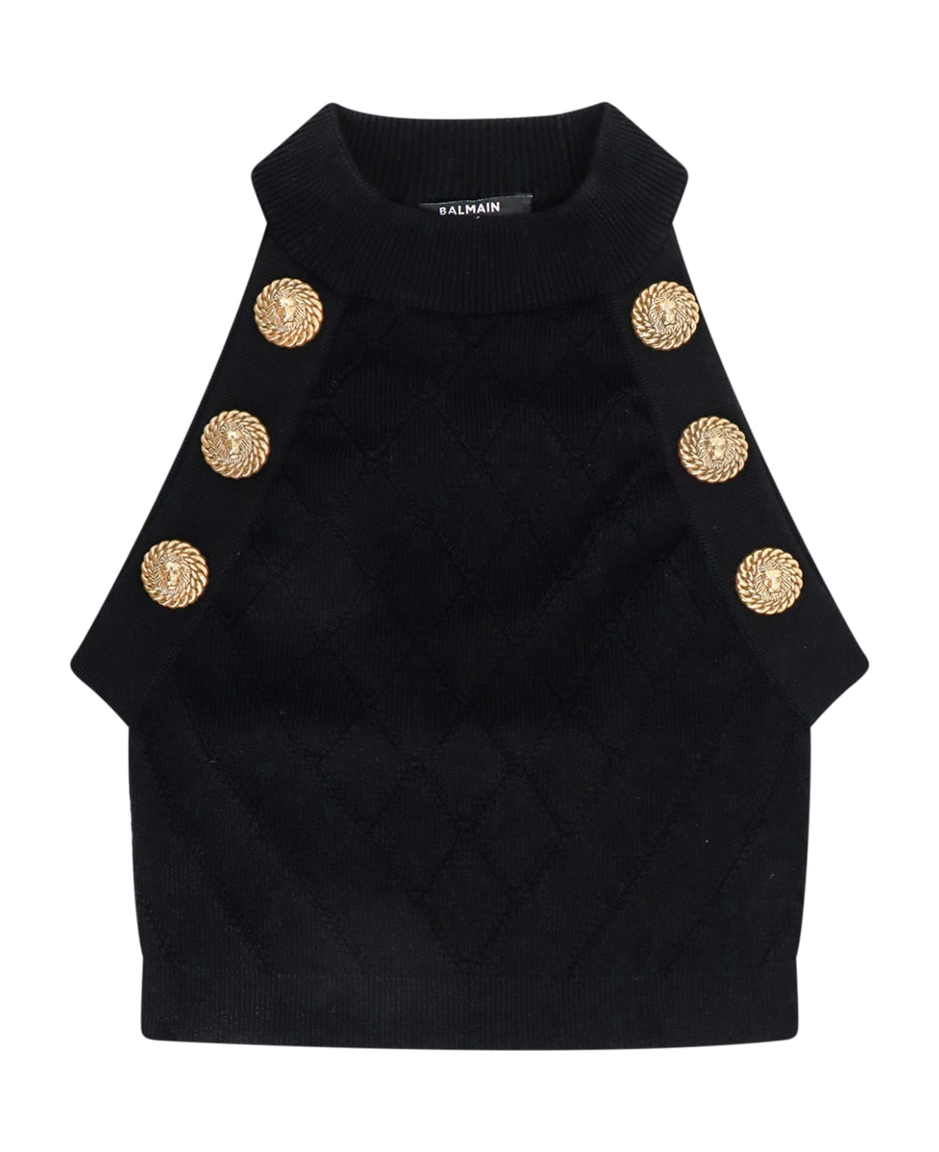 Sustainable viscose top with rhombus motif - Crew-neck - Iconic Metal Buttons - Crop Fit - Made In Italy - 83% Sustainable Viscose 17% Polyester - Conscious