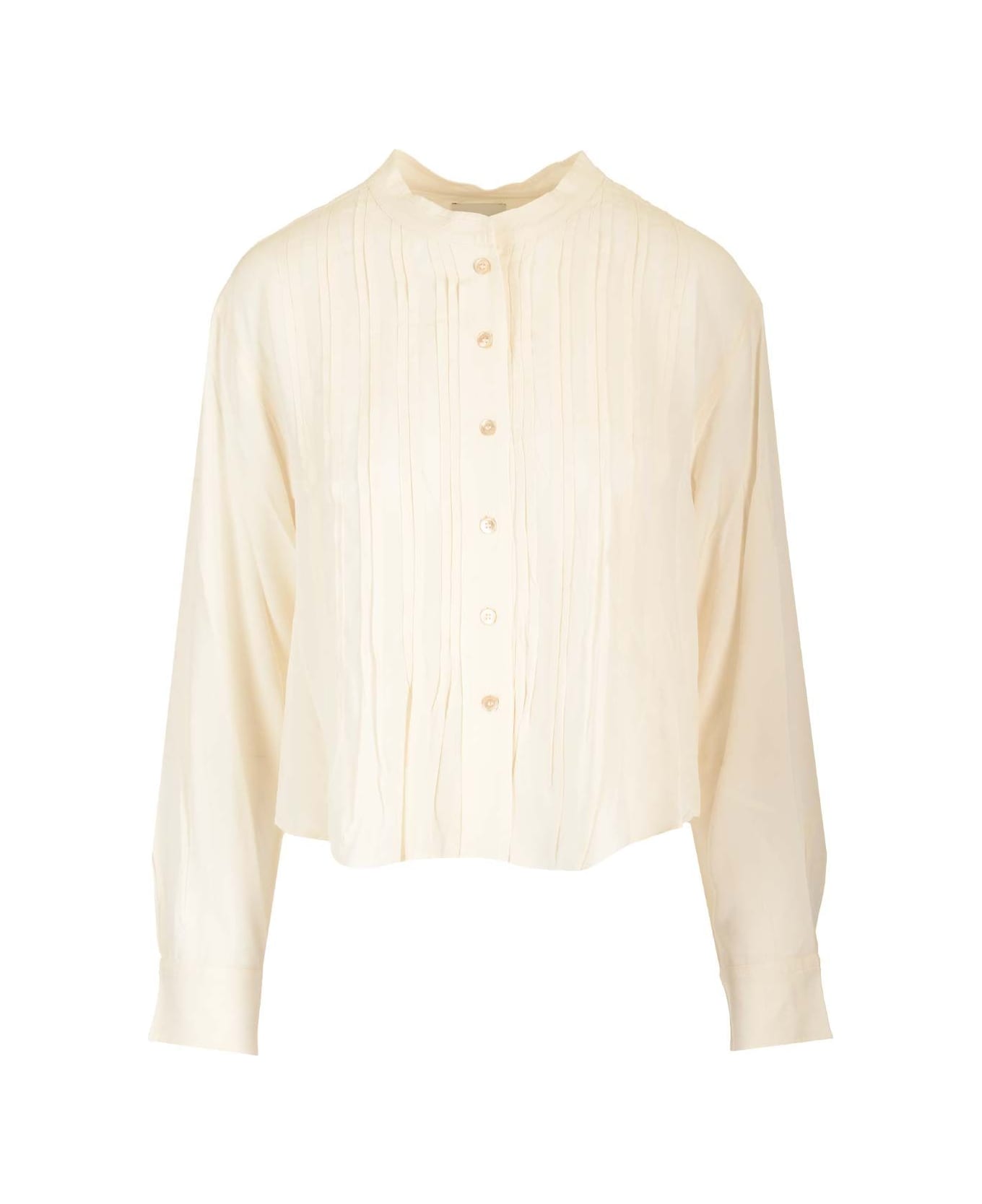 Short viscose shirt from Isabel Marant, with pleated pattern on the front, visible buttons, crew neck with small ruffle. Composition: 100% VISCOSE
