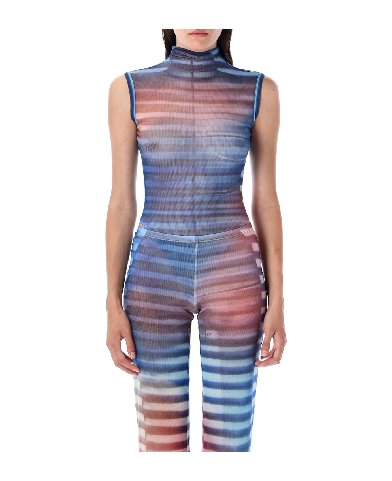 Air Bodysuit By Jean Paul Gaultier. Featuring: Stretch Tulle Fabric And Lining Allover "air" Print High Neck Sleeveless Tight Fit Model Is 1,70 Mt And Wears Size S