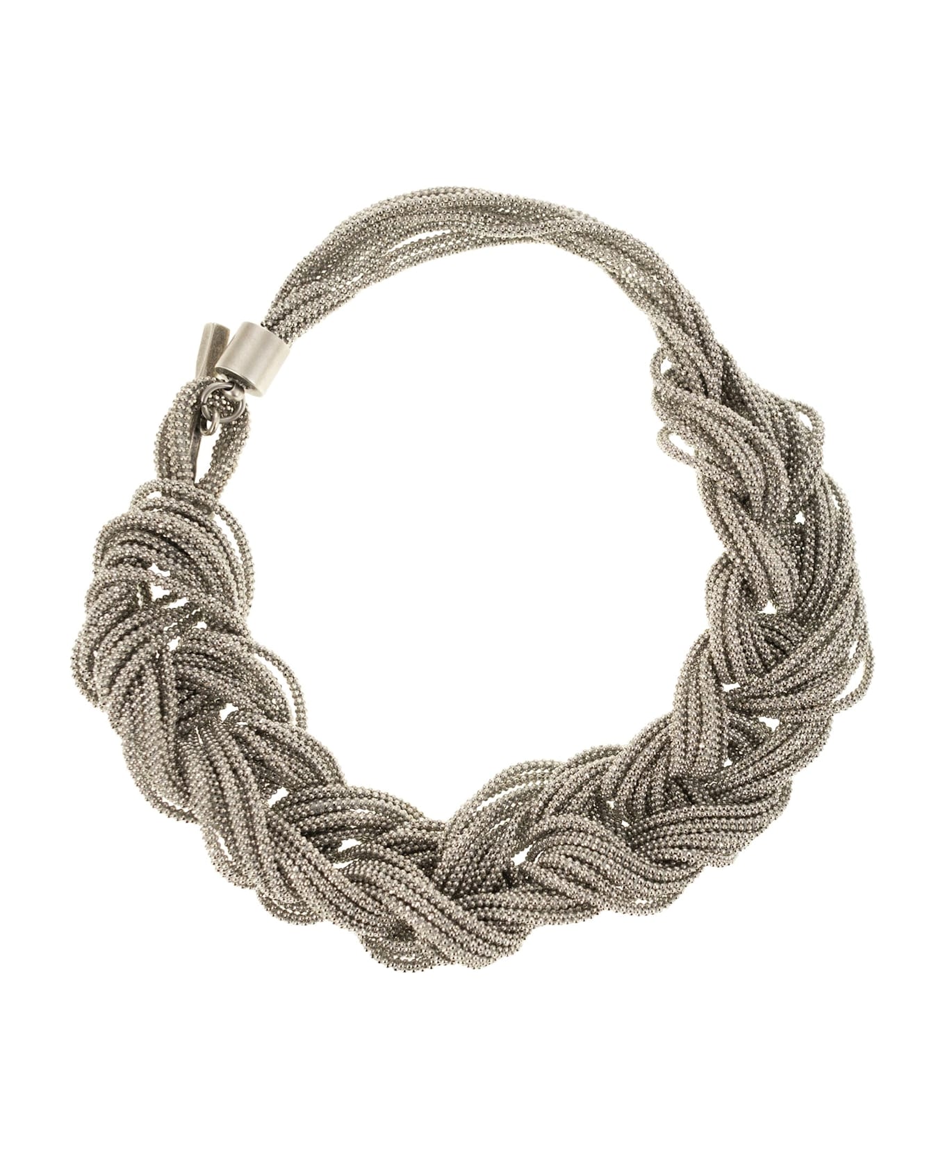 This brilliant torchon necklace made of diamond wire is an accessory that can light up any look. Made entirely in Italy using sustainable processes. - Braided necklace - Diamond wire fringes - Made in Italy DESIGNER ID: BXD265A949L269 VR1