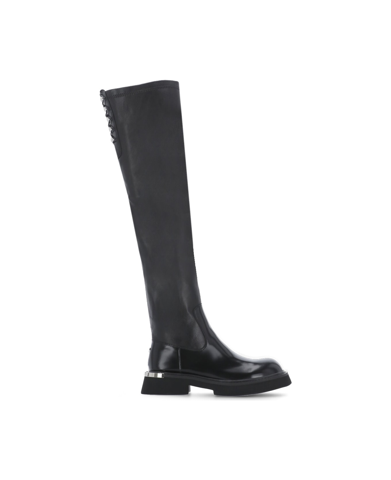 - Black Cult leather boots for woman - Side zip fastening - Side metal logo - Rear laces detail - Rubber sole