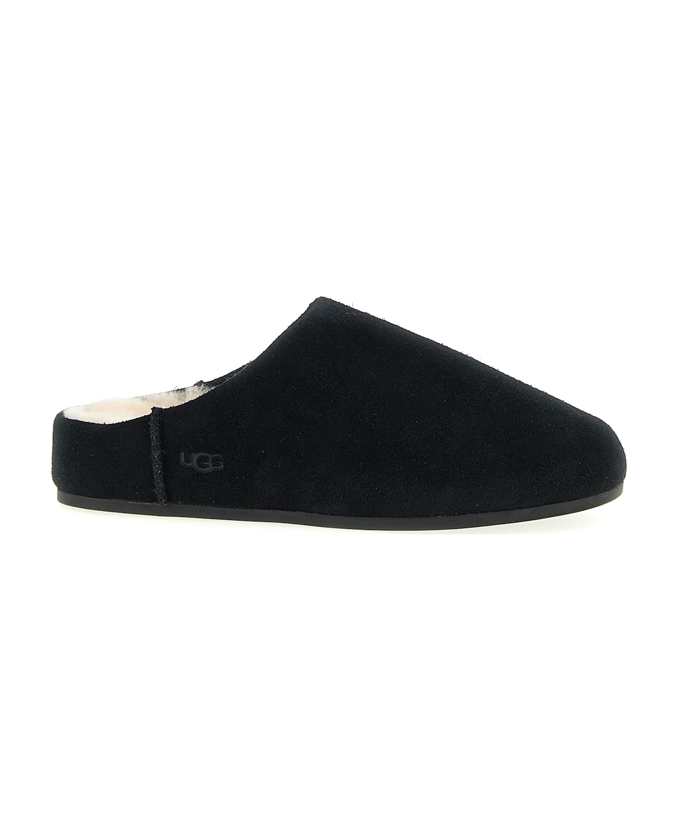 'Elea' suede slip-on with slightly padded foam silhouette, sheepskin lining and insole, embossed logo on the side, rubber sole.