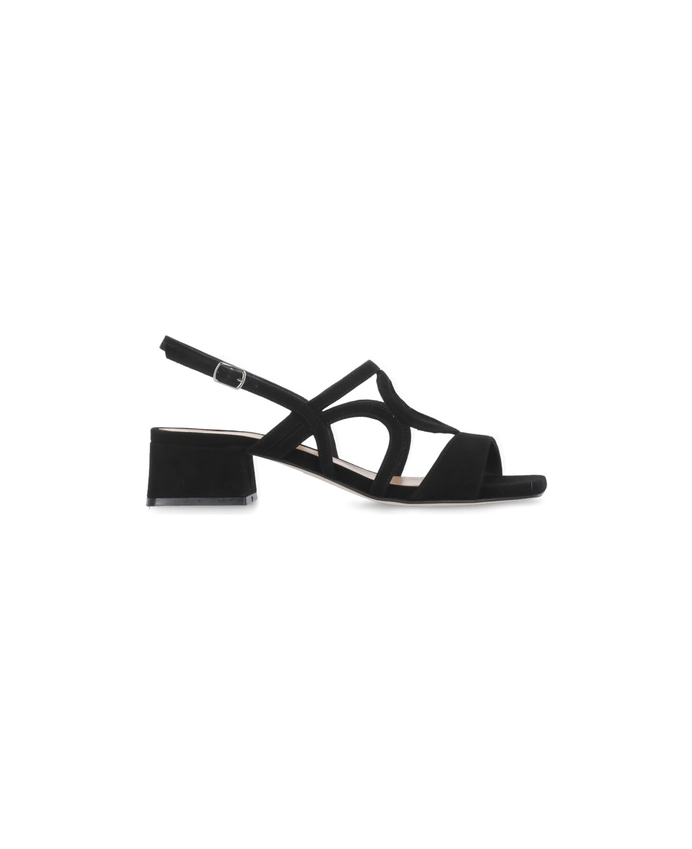 - Black Julie Dee suede leather sandals for woman - Squared toe - Rear strap fastening - Squared heel (5 cm)