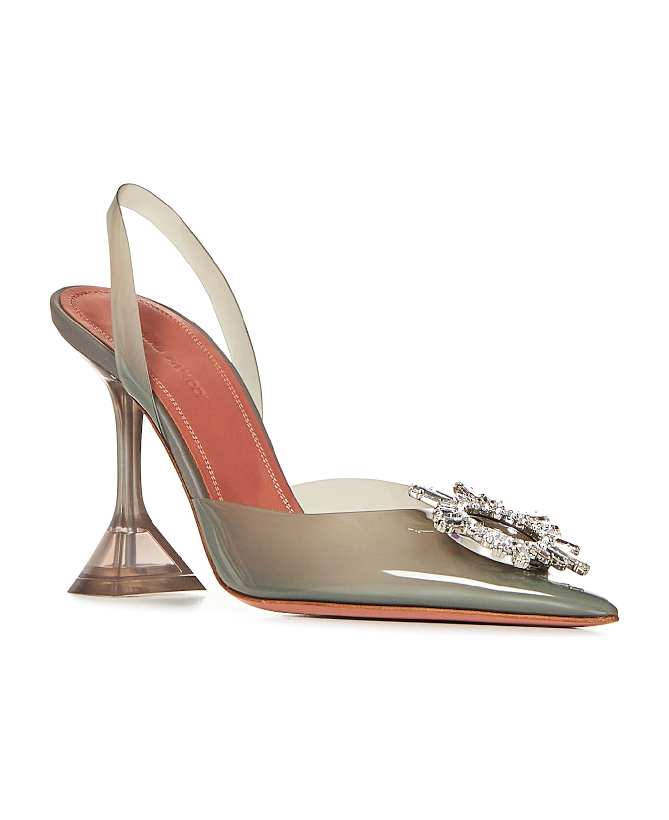 Composition: Slip-on; Milky Grey Pvc Ankle Strap Pointed Toe With Crystal-embellished Brooch At Front Milky Grey Plexiglass Hourglass Heel Leather Lining And Insole Leather Sole With Rubber Insert Fits Small, We Recommend One Size Up Milky Grey Color 100% Pvc; Lining: 100% Goat; Sole: 70% Leather, 30% Rubber Made In Italy