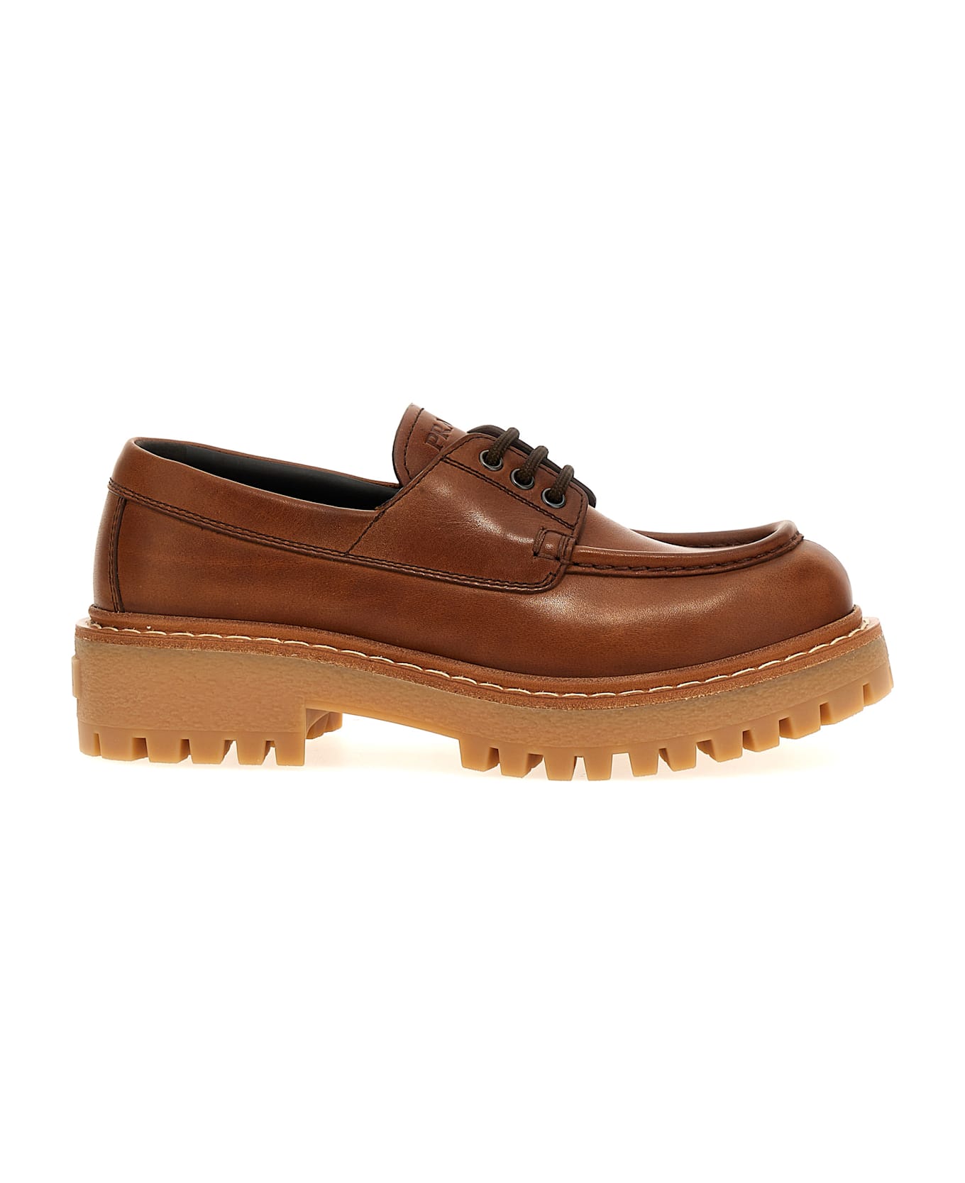 Vintage-effect leather lace up, embossed logo on the tongue, monobloc rubber sole, double welt in printed rubber effect