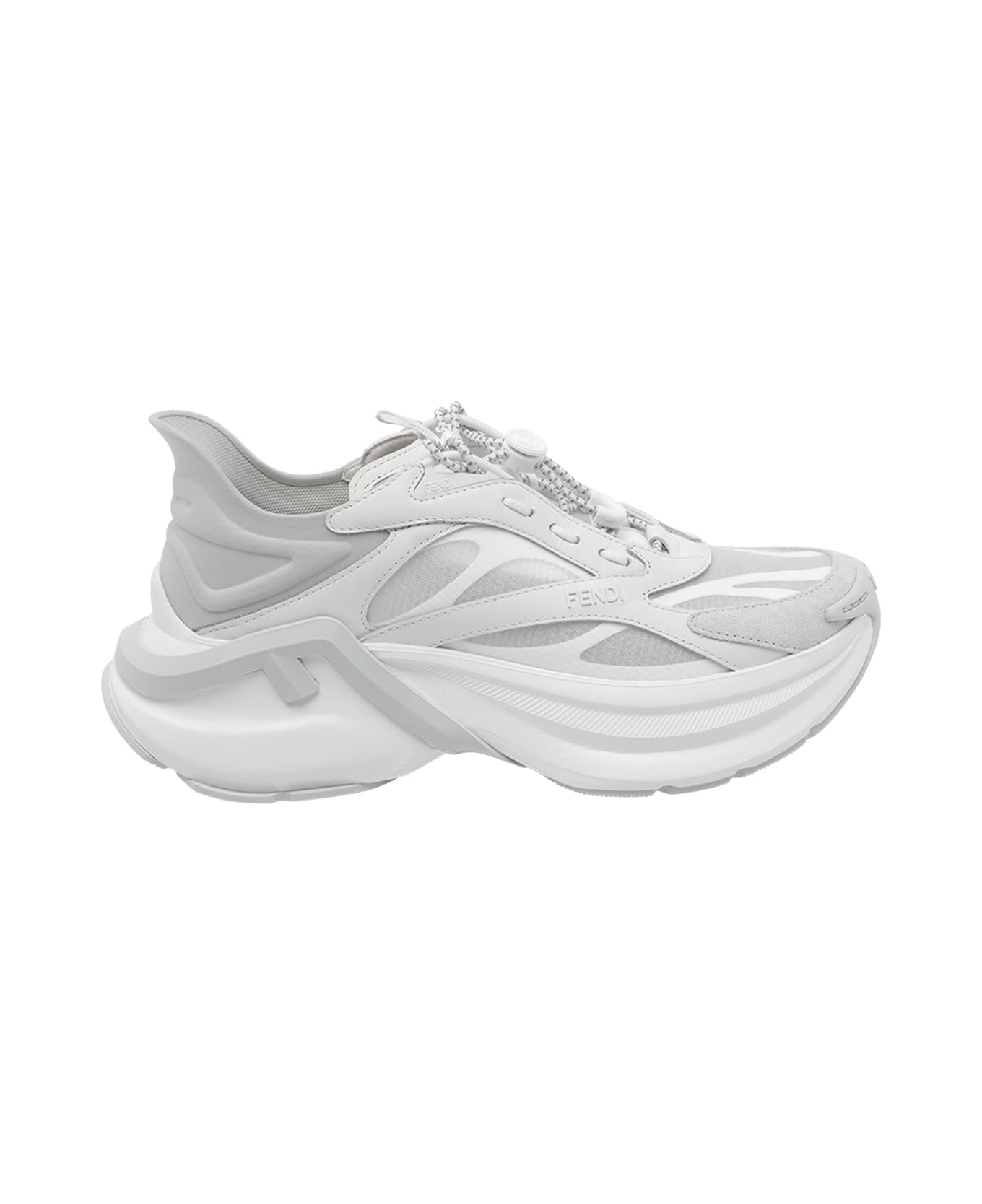 Fendi white F-Light sneakers, laces closure, leather and fabric upper, round toe Composition: 100% Leather Fabric Rubber Sole