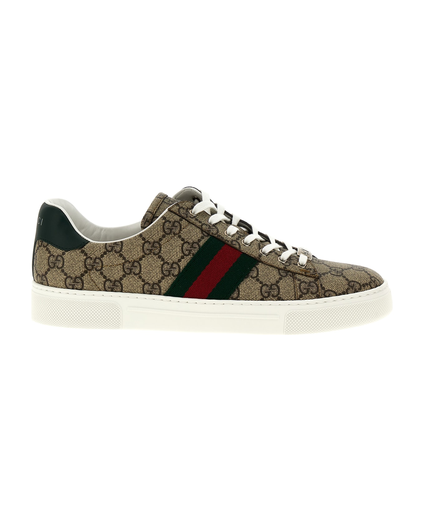 'Gucci Ace' sneakers in GG Supreme fabric with Web ribbon detail, laces, rubber sole. Composition: 60% polyurethane 20% cotton 20% polyester