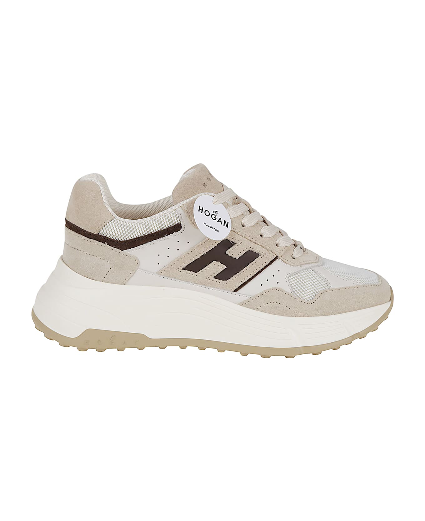 Hi-Fi H669 sneakers in suede and technical fabric with smooth leather details and a maxi H on the side stripe BY HOGAN. Evoking the sporting iconography of the 80s with its technical finishes and urban vocation; Hyperlight rubber sole (6. 5cm) with studs.