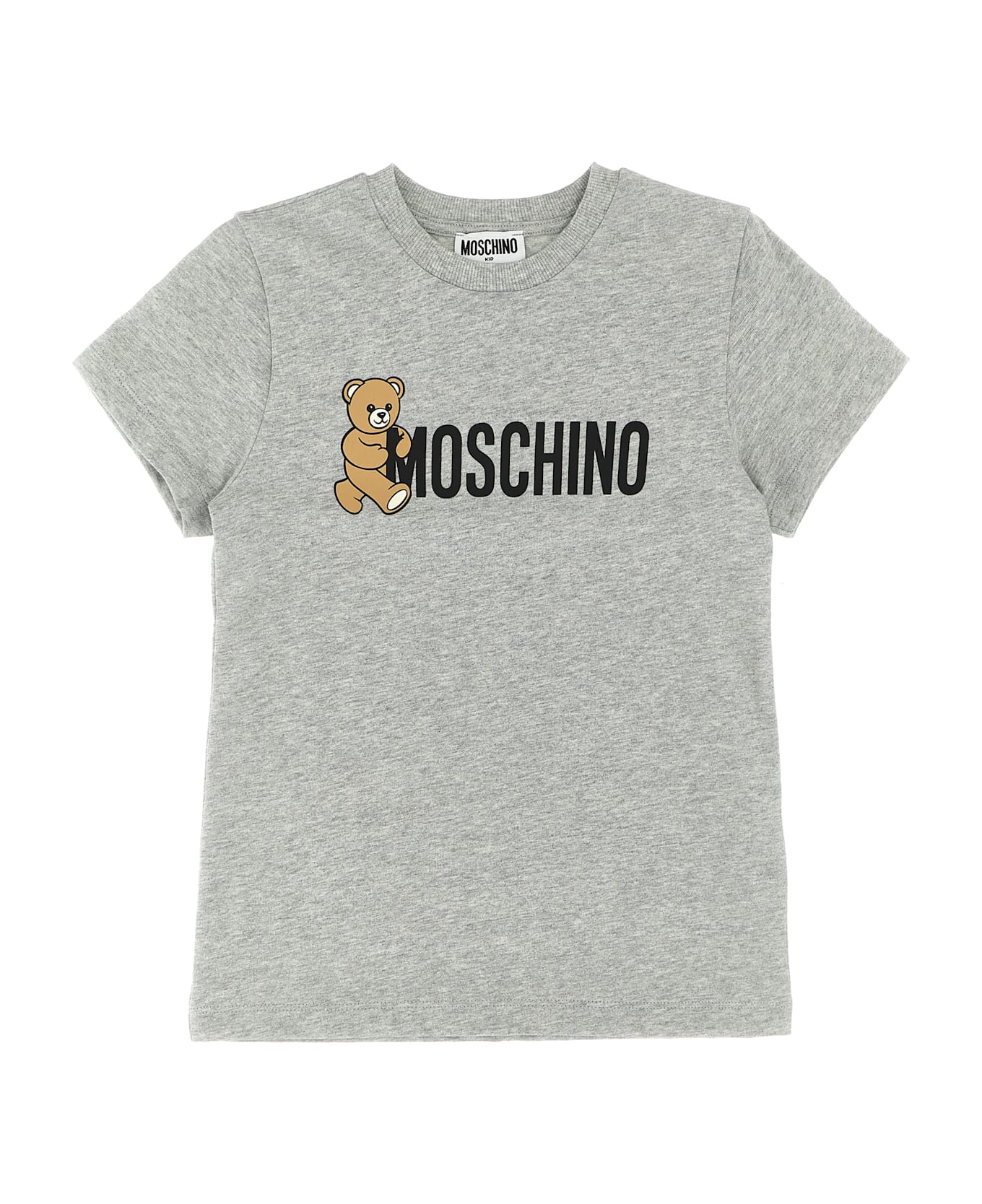 Mélange cotton jersey T-shirt with front 'Moschino Teddy Bear' print, crew neck, short sleeves with dropped shoulders. Composition: 100% cotton