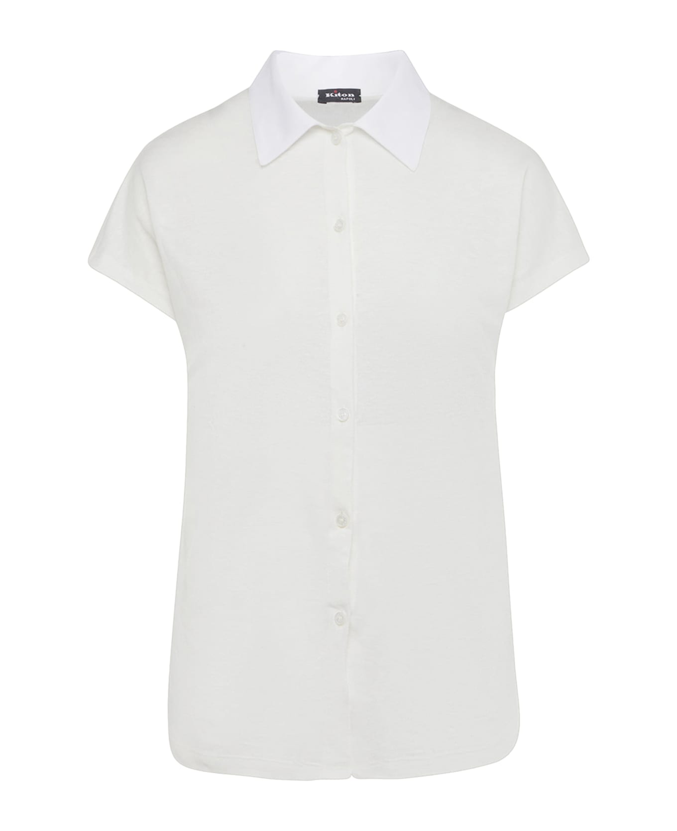 This shirt with dropped short sleeves comes in white linen knit with a white cotton collar. The design of the shirt gives it an elegant and sophisticated look, meaning it can be worn for even the most formal occasions. This Kiton piece calls to a classy woman with a strong and impassioned personality, a fine connoisseur of the traditional tailoring it bears. To keep your Kiton garment looking flawless, we recommend professional laundering and pressing.